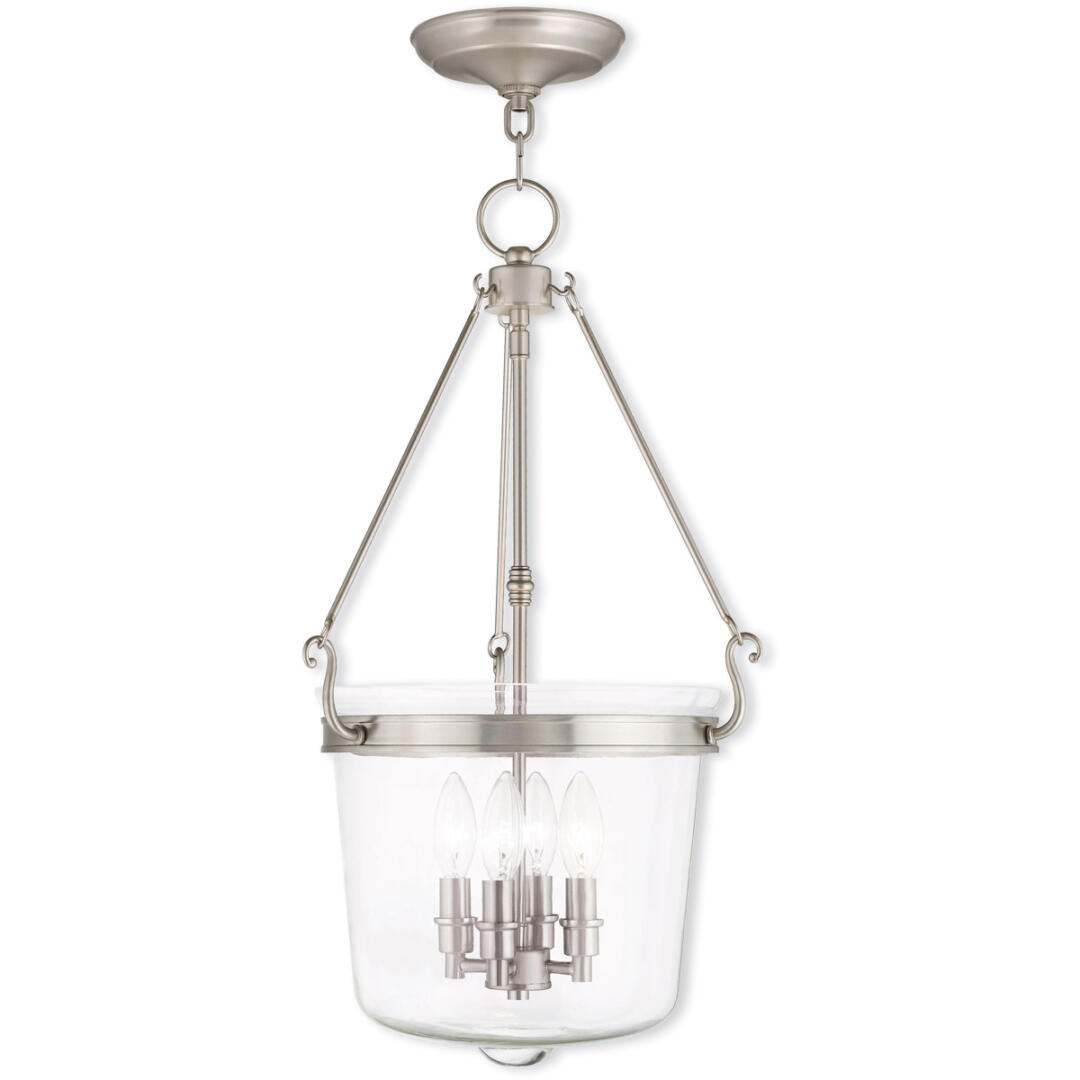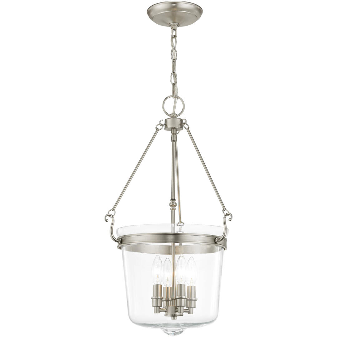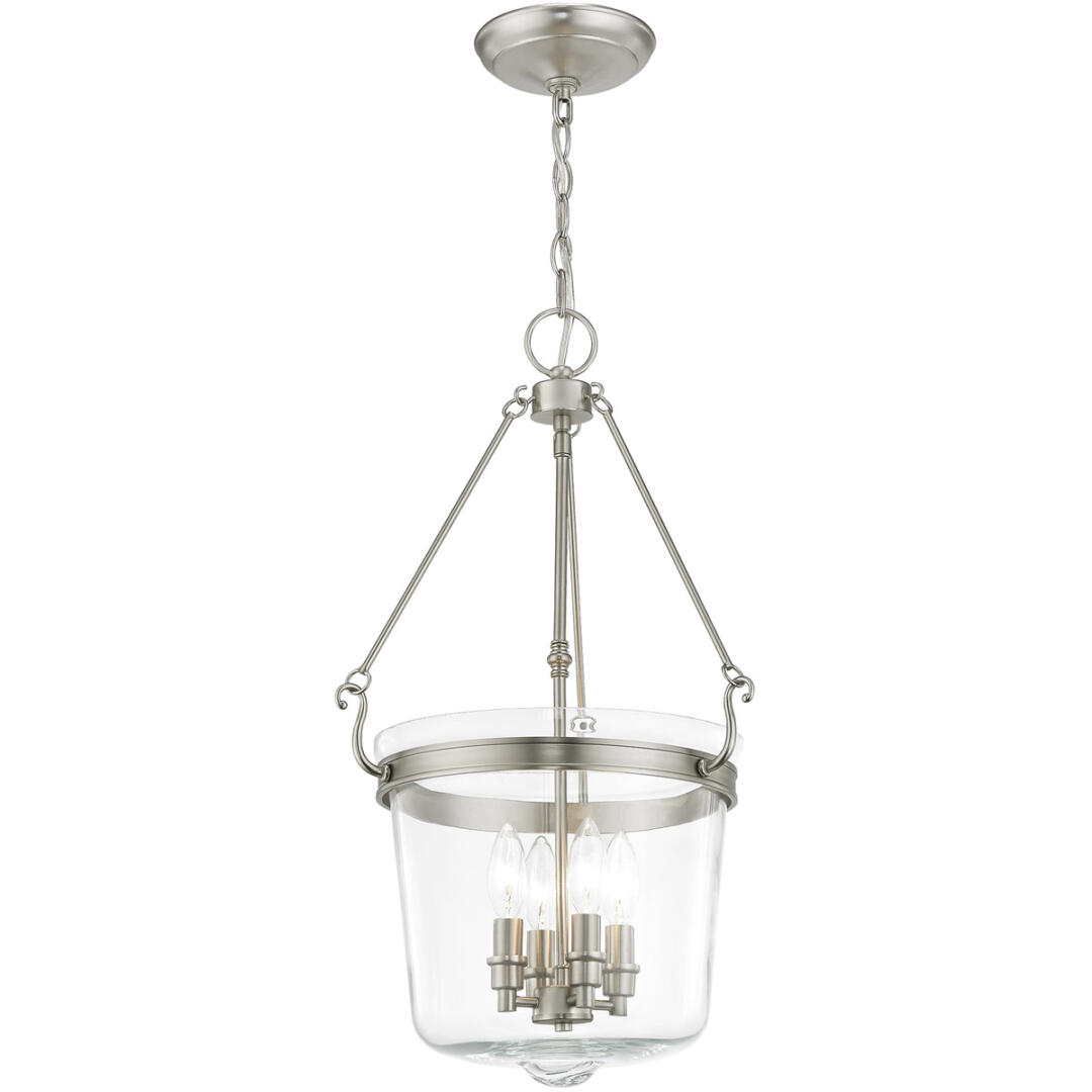 4 Light Polished Nickel Pendant light Hanging Light Fixture with Hand Crafted Clear Glass Shade-Lighting Lumens