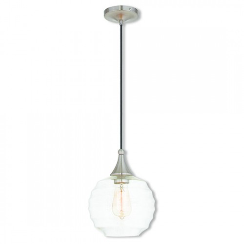 Clean and sleek, this pendant features ribbed clear glass with brushed nickel hardware.