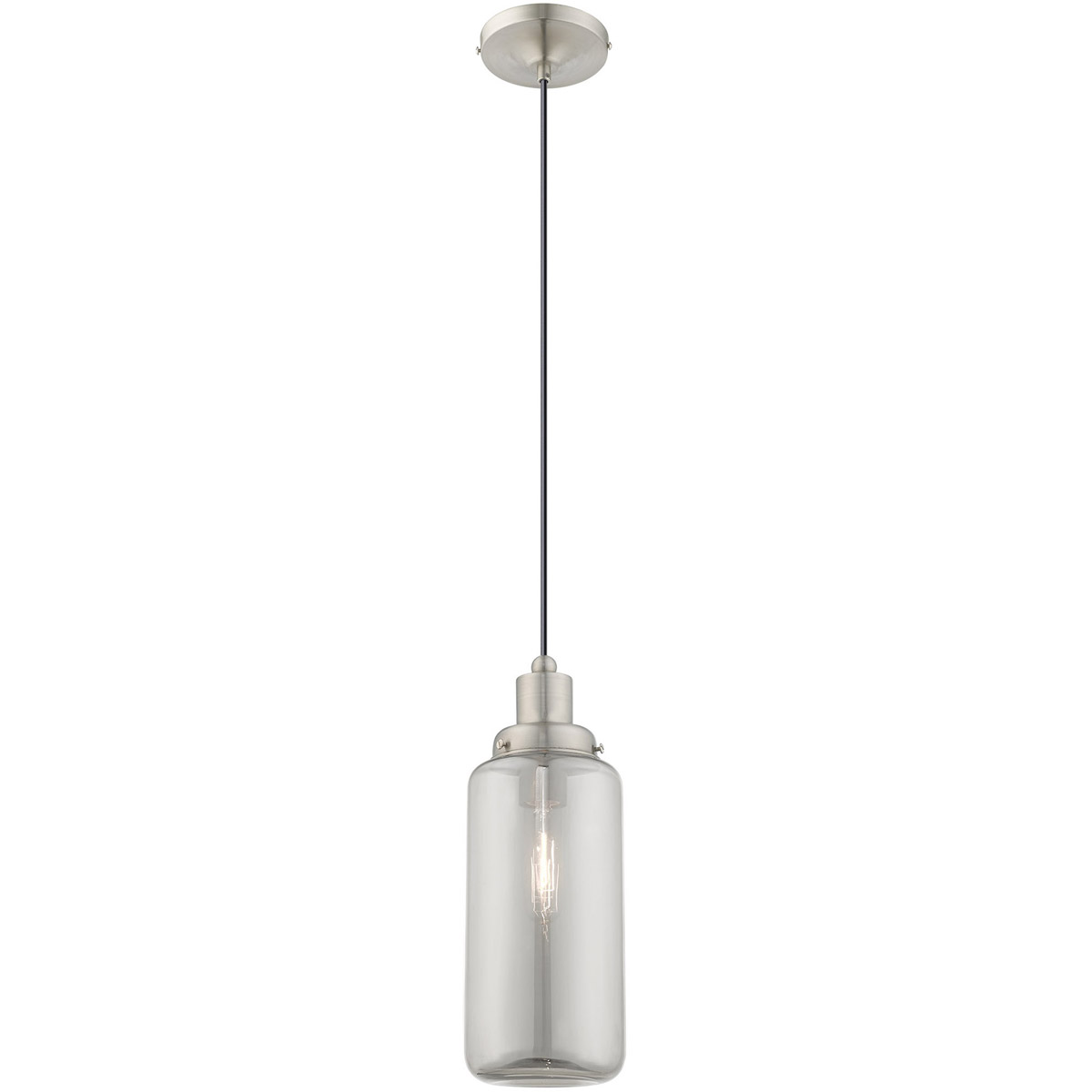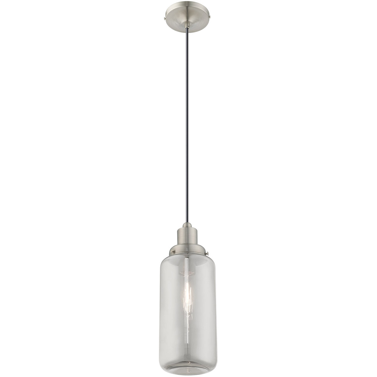 Simple shaped hand-blown smoke glass add to the authentic charm of this industrial style pendant.