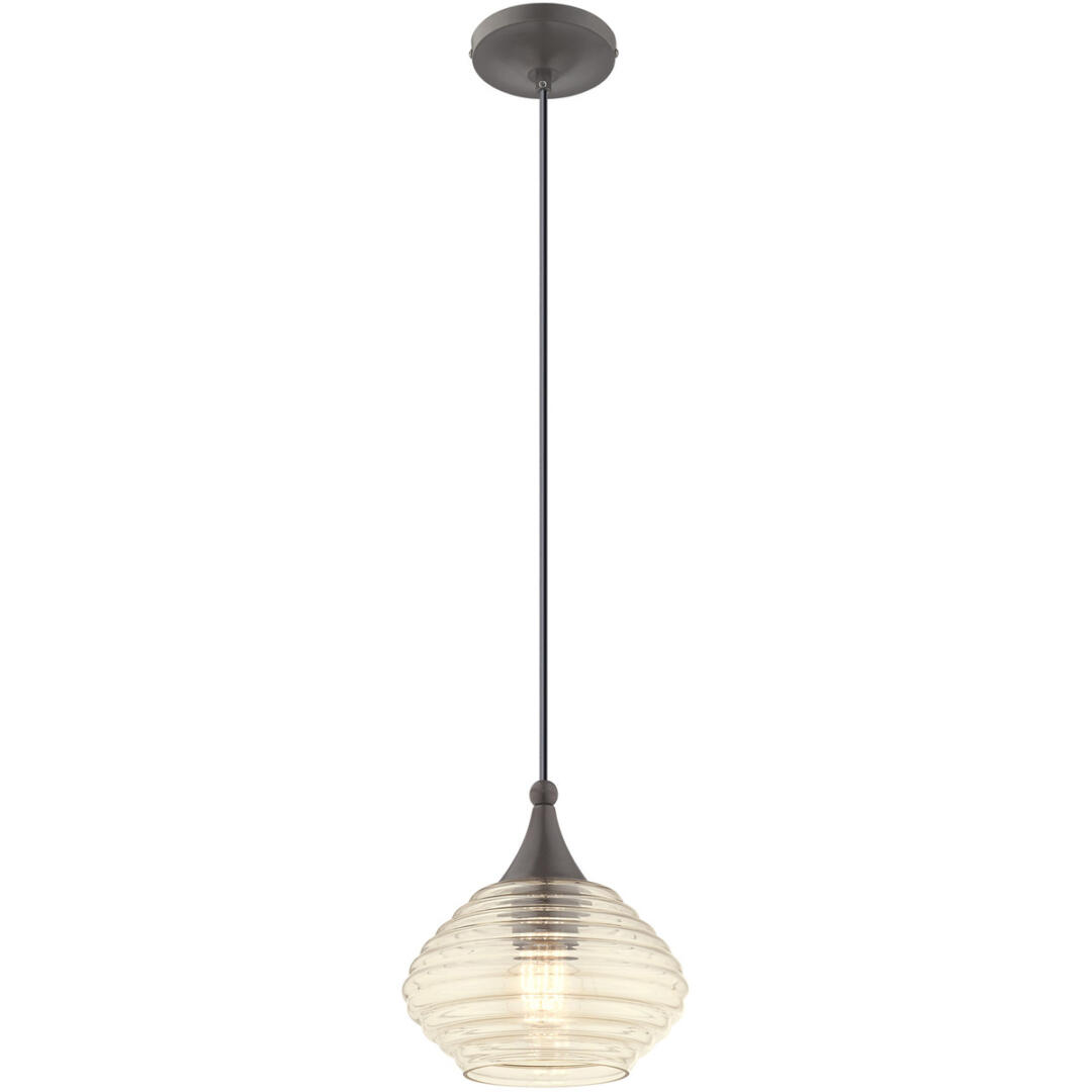 This pendant light features a beehive shaped champagne glass shade suspended from English bronze hardware.