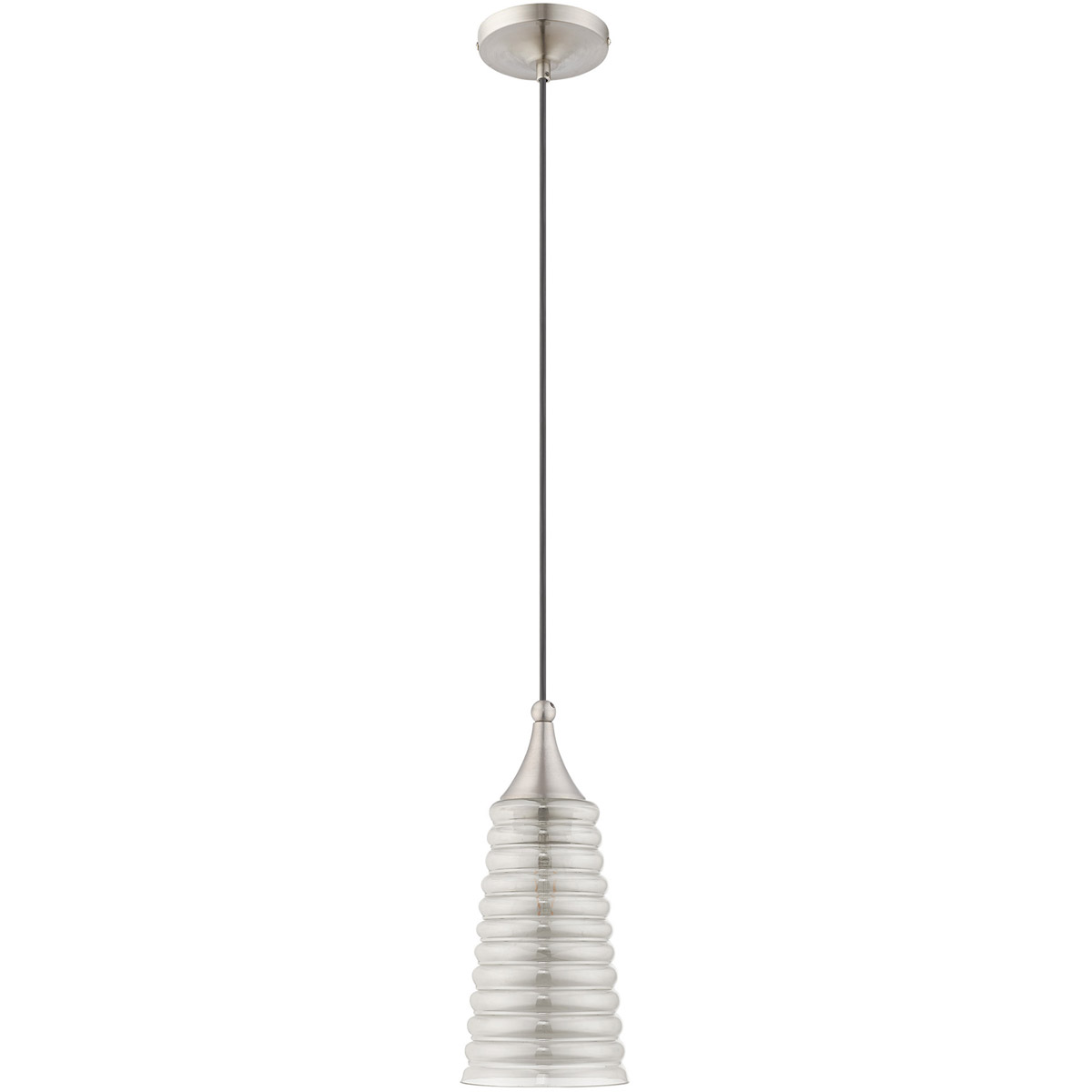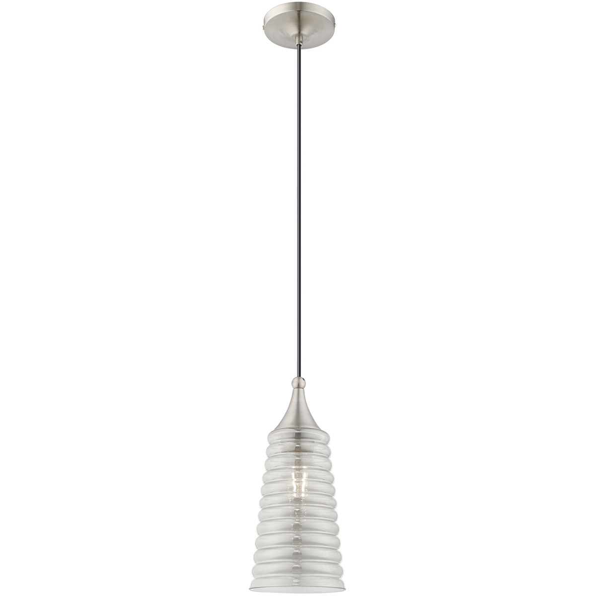 Smoke ribbed glass refracts against the light source, creating this simple, softer, retro style pendant light.