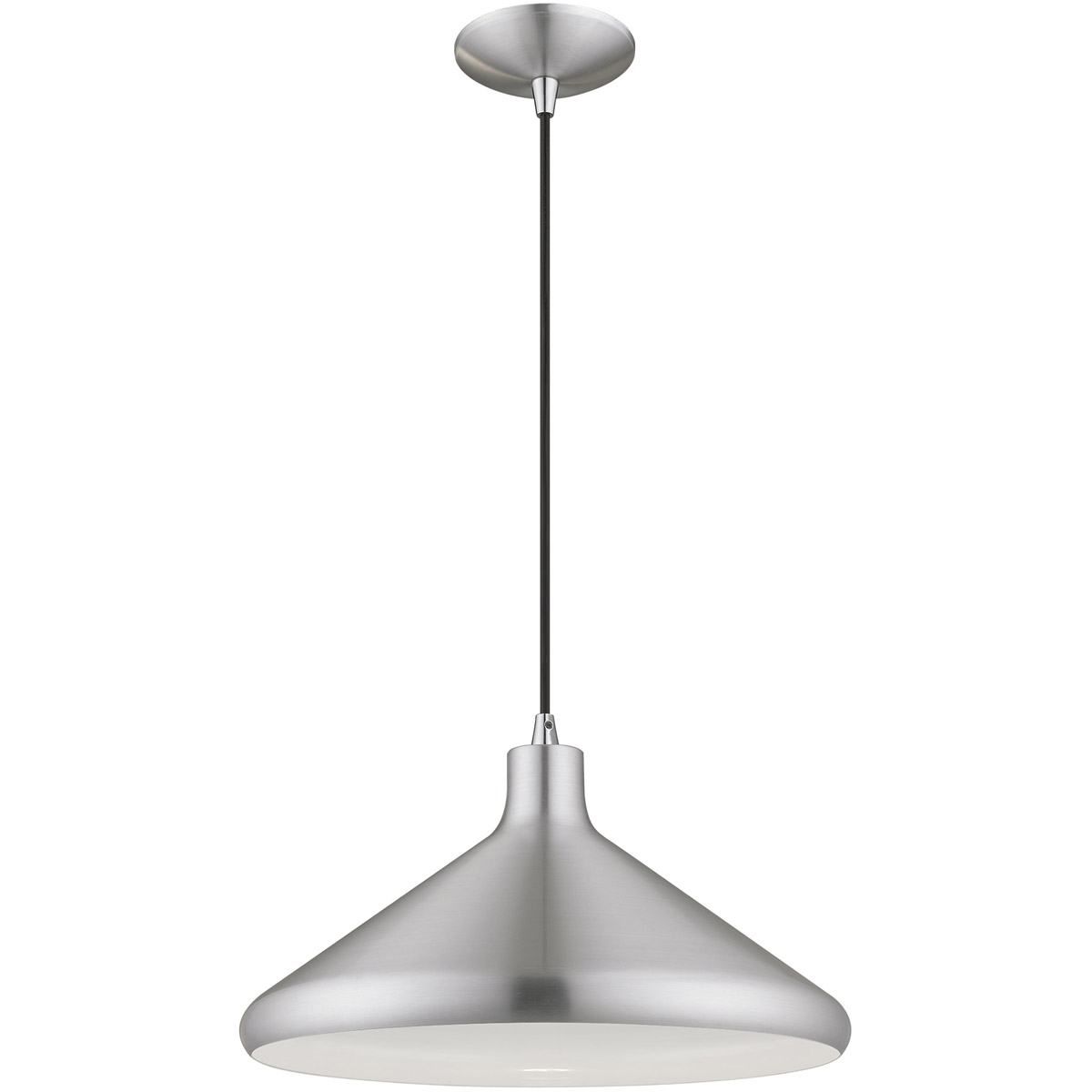 | Glass/Shade Type: Brushed Aluminum Metal Shade with Shiny White Finish Inside | Diameter: 15.25 Inch |
