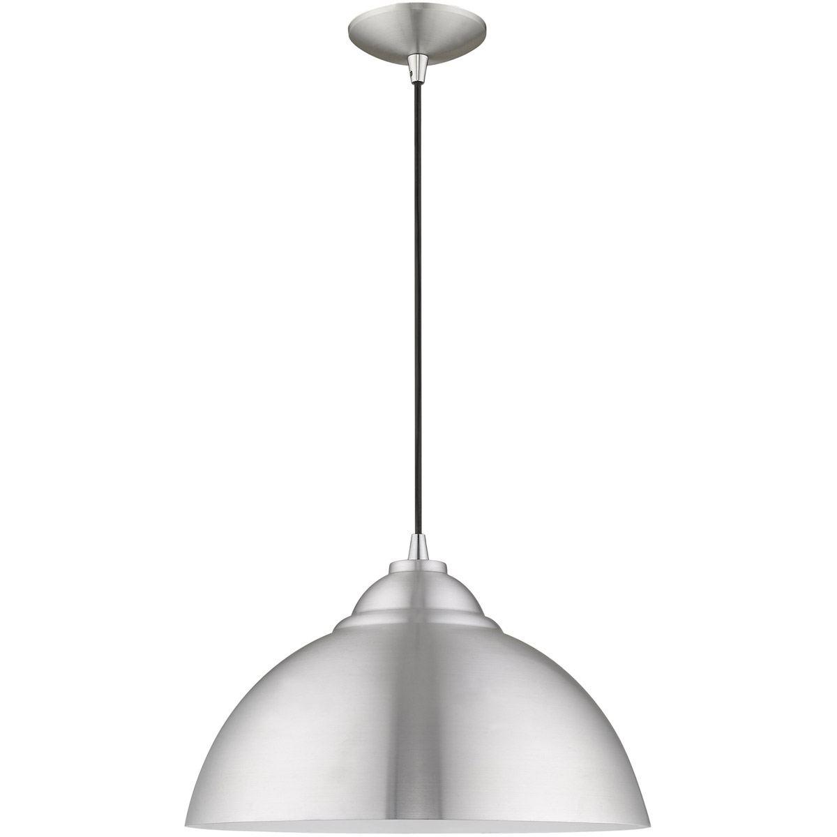 1 Light Brushed Aluminum Mini Pendant with Brushed Aluminum Metal Shade with Shiny White Finish Inside Shade-Lighting Lumens