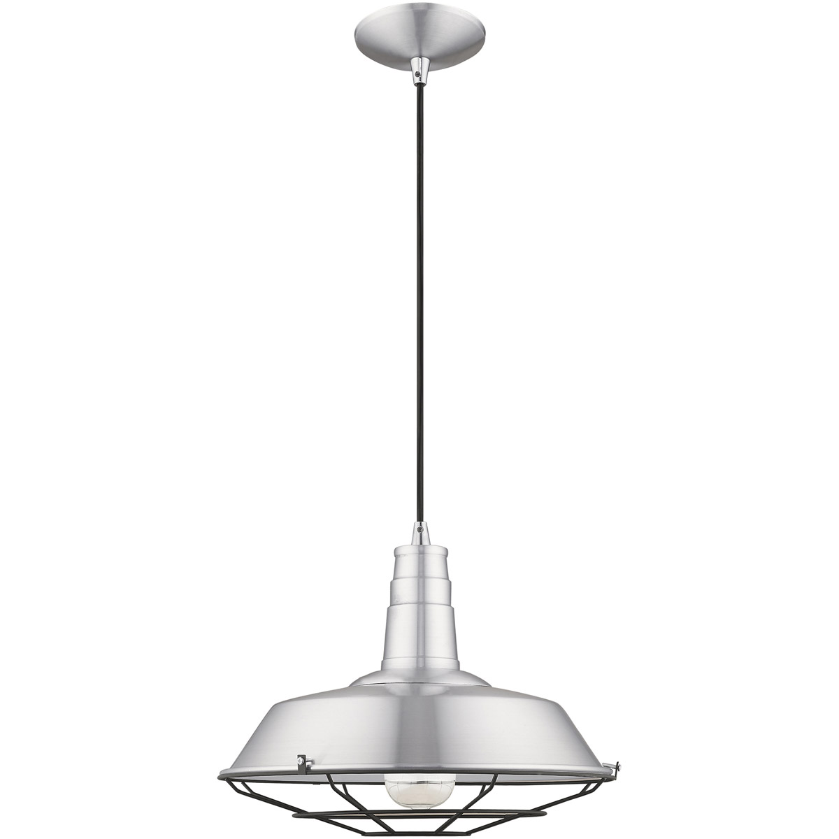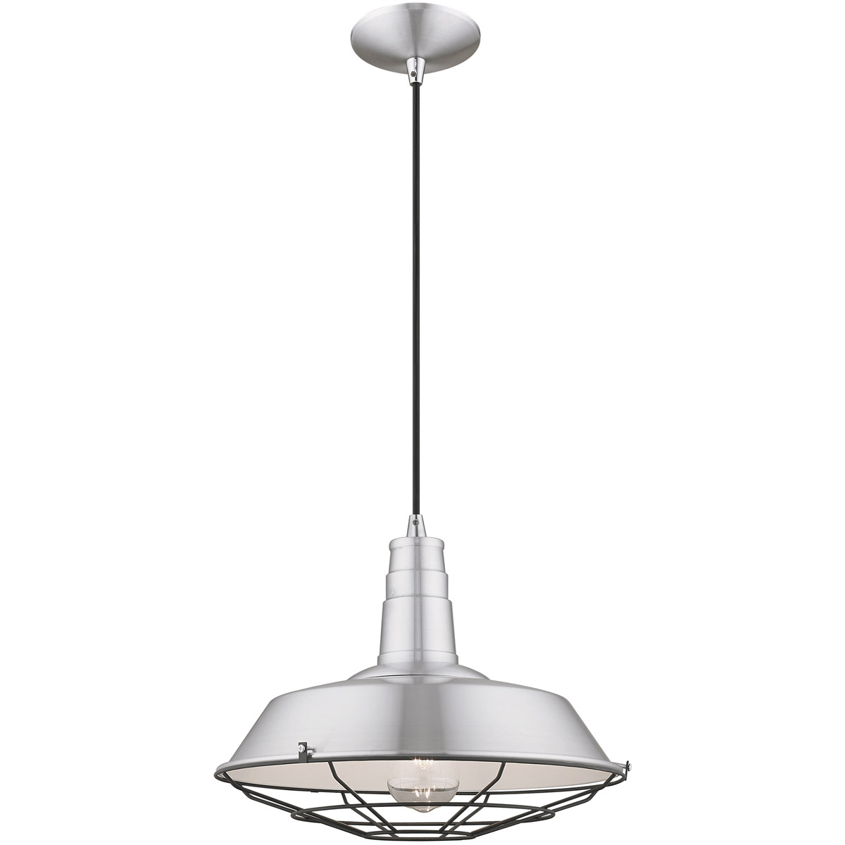 With the caged diffuser that evokes an antique presence. The brushed aluminum finish accentuates the crafted detail of this pendant. The interior is finished off in shiny white to give this pendant a decorated consistently throughout the entire design.