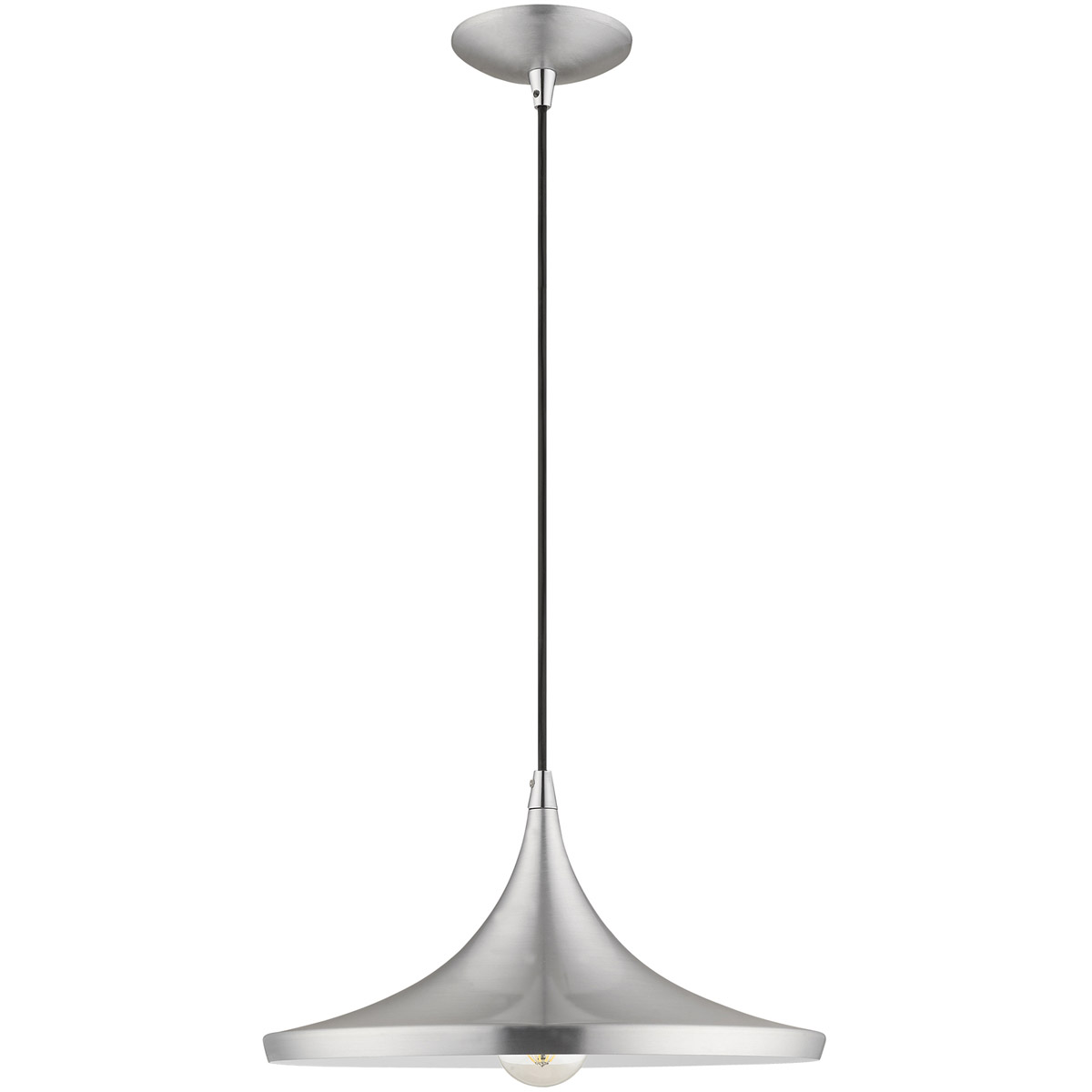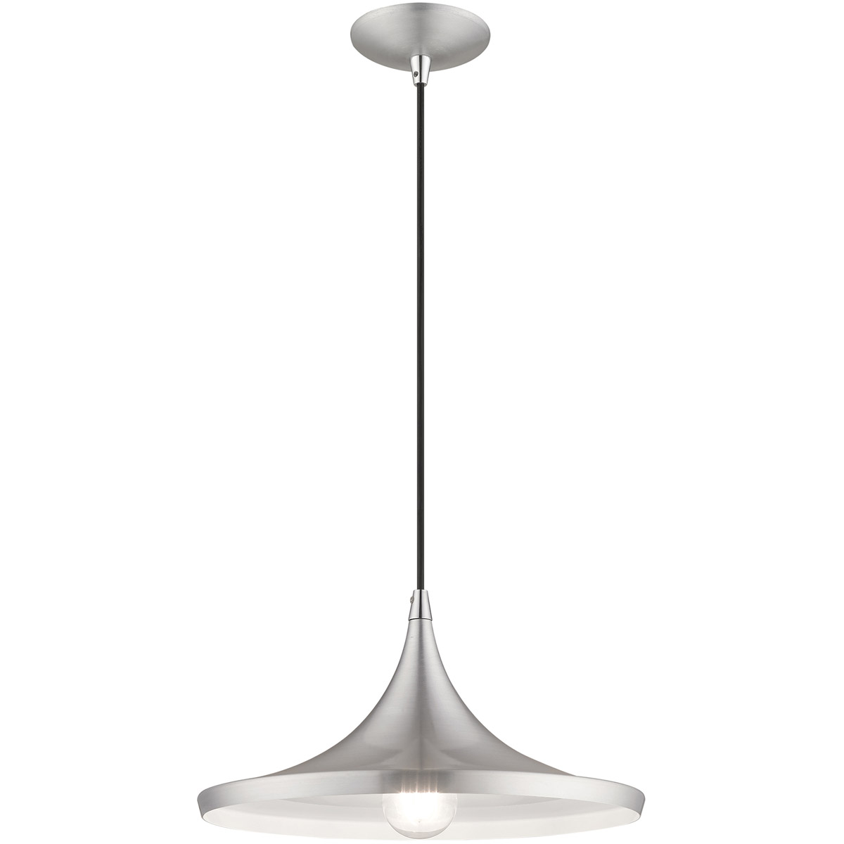 1 Light Brushed Aluminum Mini Pendant with Brushed Aluminum Metal Shade with Shiny White Finish Inside Shade-Lighting Lumens