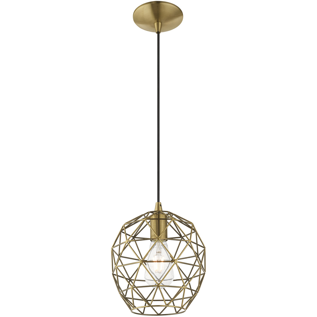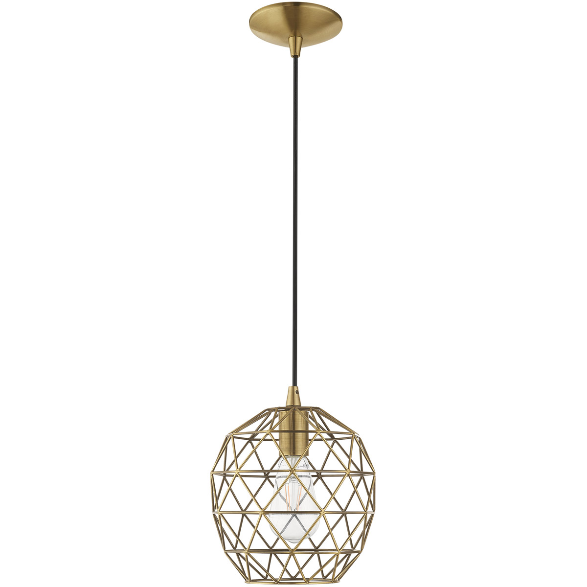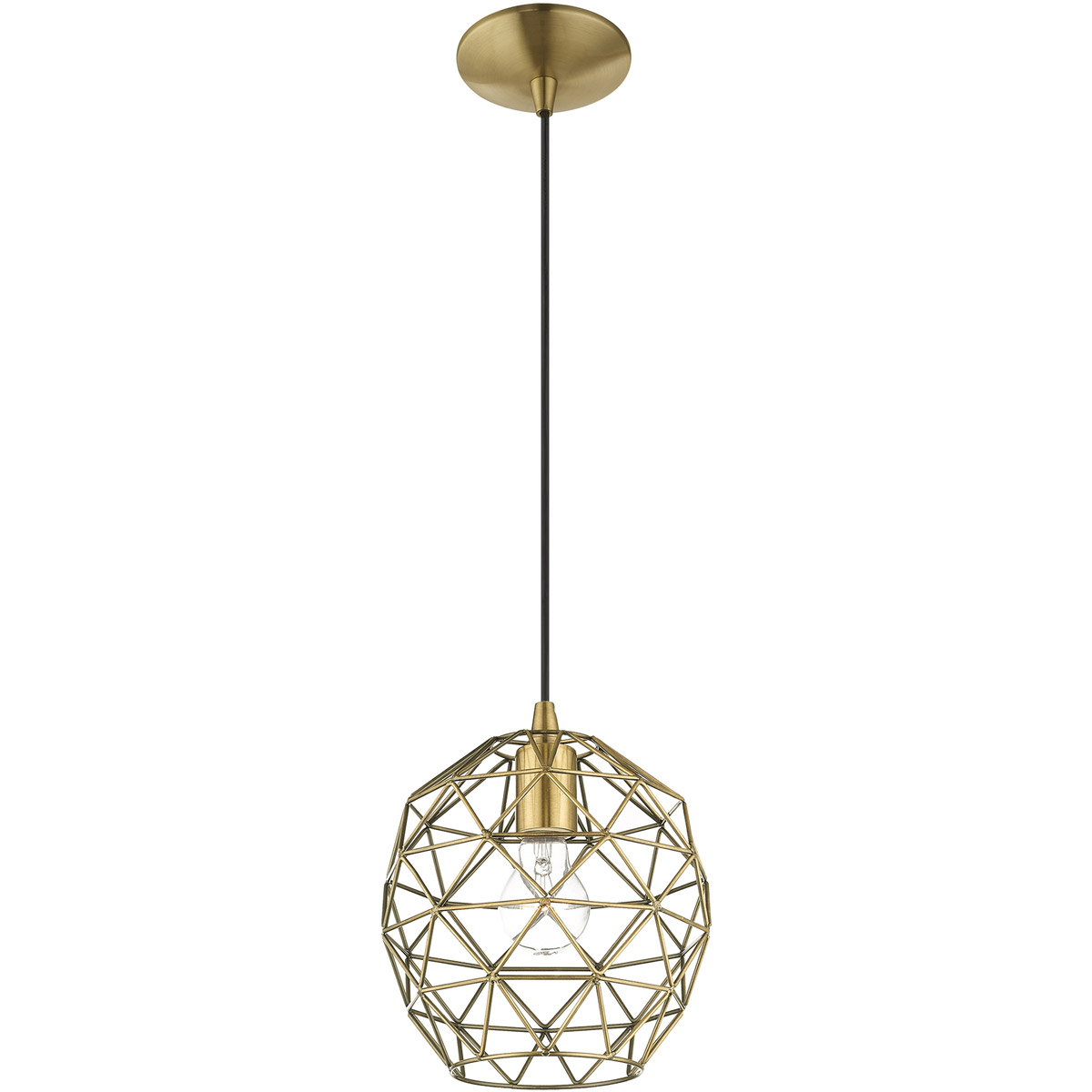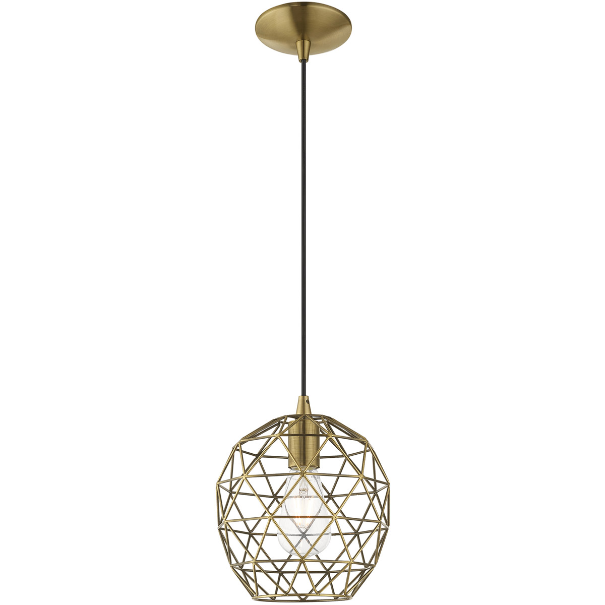 | Glass/Shade Type: Antique Brass Geometric Metal Shade | Diameter: 8 Inch |