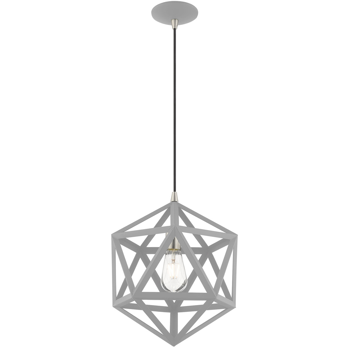 You don’t have to be a whiz in math class to see that our Geometric mini pendant has all the angles. The caged design is up-to-the-minute modern, while the Nordic gray finish gives it that contemporary feel.
