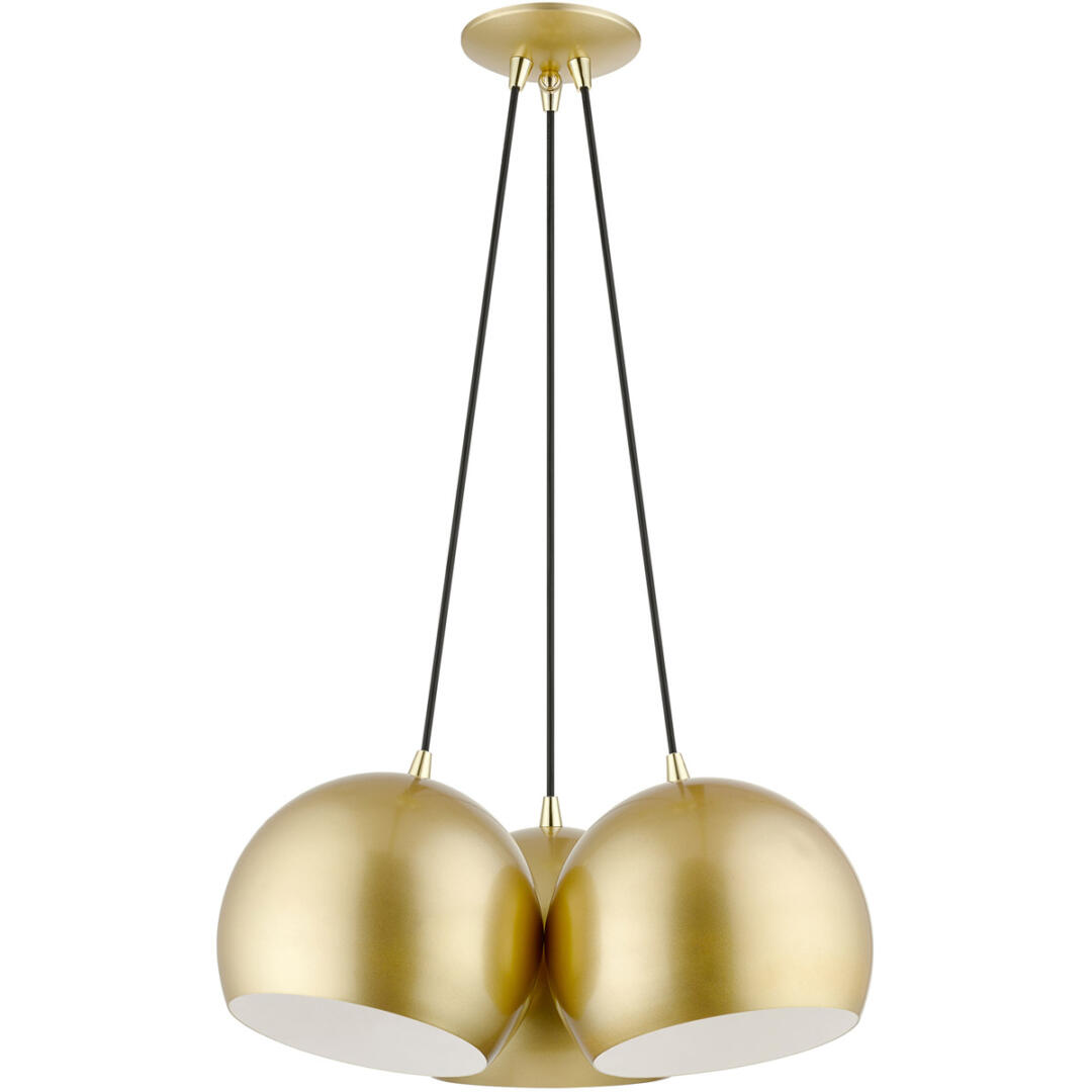 The clean and crisp Piedmont 3-light cluster pendant makes a contemporary statement with the smooth curve of its soft gold shades. A gleaming shiny white finish on the interior of the metal shades brings a refined touch of style. Polished brass finish accents complete the look.