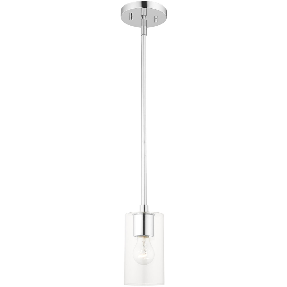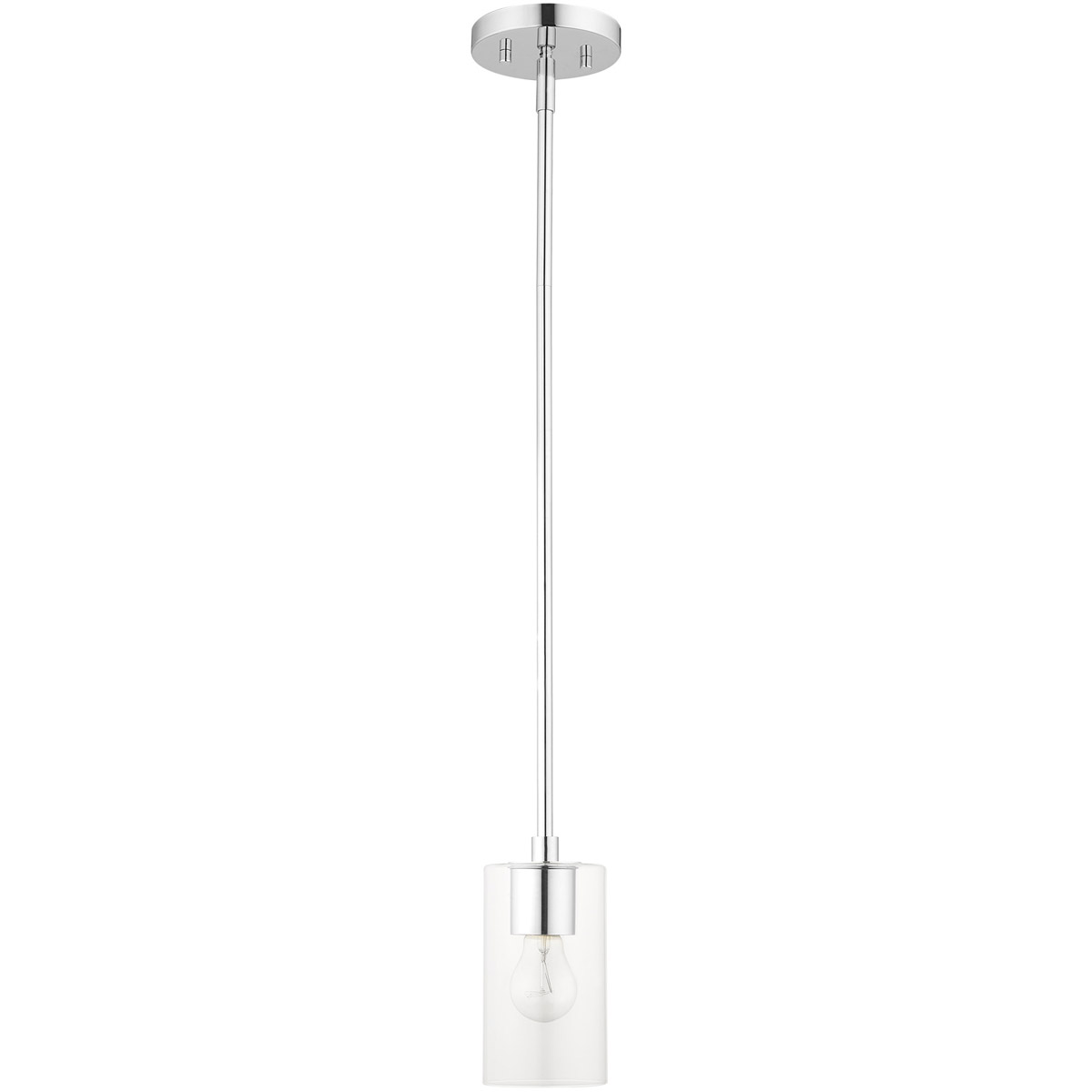 Illuminate your home with a bright design from the Zurich collection. This one-light mini pendant features a polished chrome finish with clear glass. Perfect for a contemporary or transitional luxury bathroom, bedroom or kitchen setting.