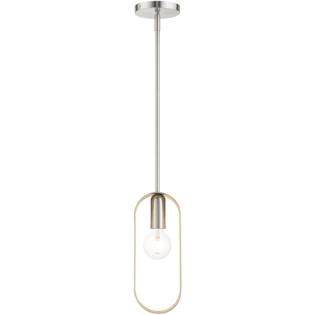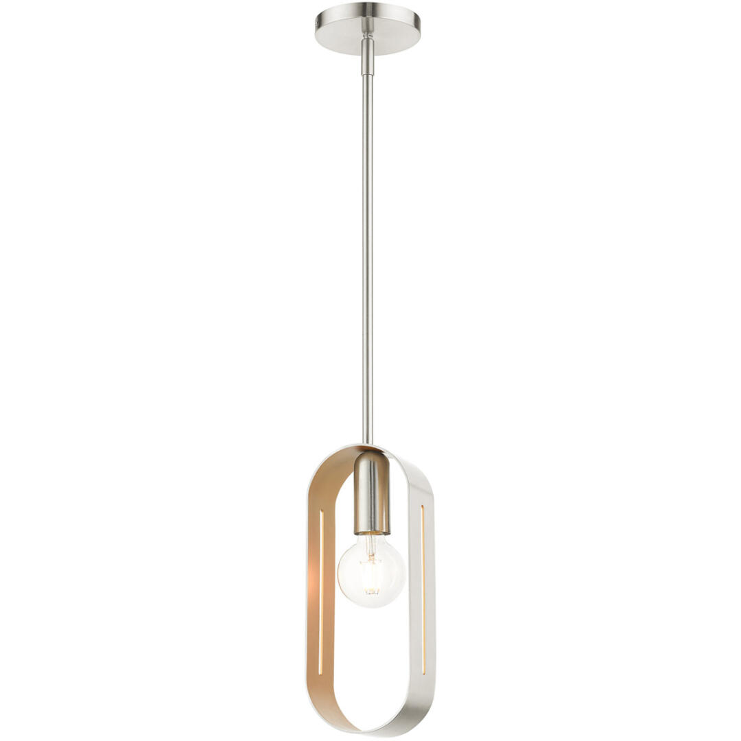 Inspired by Scandinavian design, the Ravena collection makes a definitive statement with strong silhouettes, clean lines and is a stunning focal point in a modern urban style interior. The exposed bulbs make a beautiful complement to the distinctive contrasting finishes. This stunning single light pendant fits perfectly in a minimalistic modern bathroom, kitchen countertop, dining table or bedroom and it is presented in a brushed nickel finish with gold finish inside.