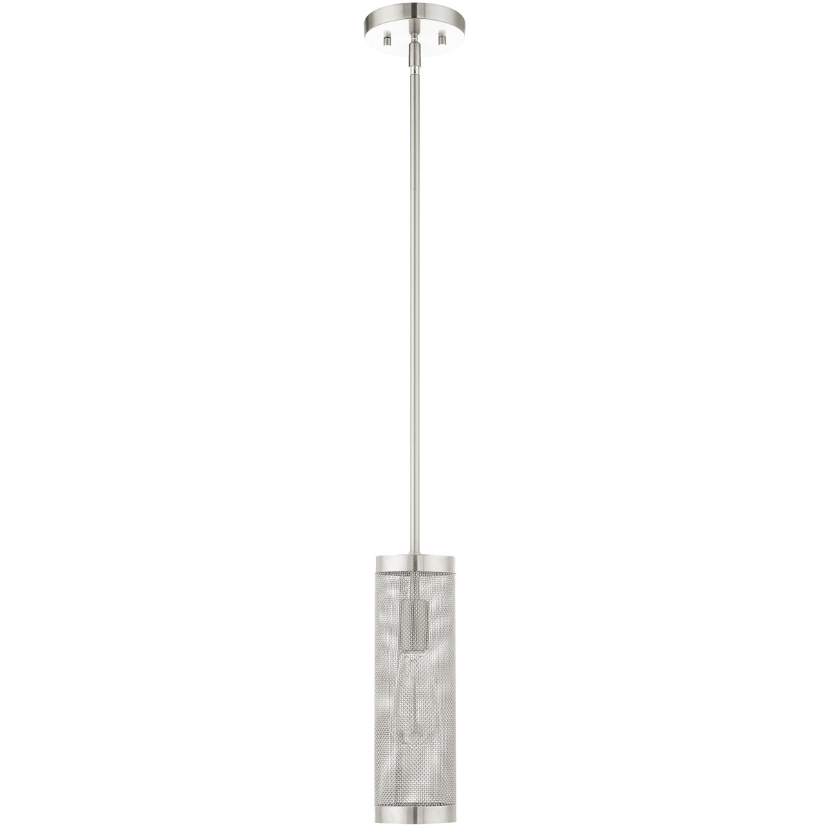 The Industro collection has a clean, crisp look and contemporary appeal. This one-light pendant has a brushed nickel finish and a sleek stainless steel mesh shade. Will adapt well over the kitchen island, bedroom, bathroom dining room, or office tastefully elevating your style.