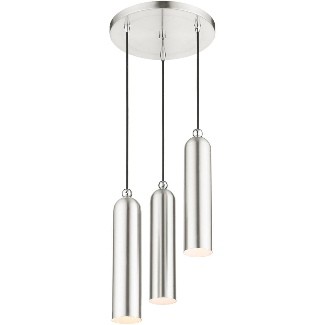 Ardmore is a high style chic mid-century modern classic collection embodying the elegant lifestyle of Scandinavian culture. The simple lines and a multitude of finishes create a well handcrafted handsome collection. This three-light brushed nickel finish multi-pendant is so versatile it will fit literally any style. It is perfect for a kitchen countertop, dining room or a bathroom.