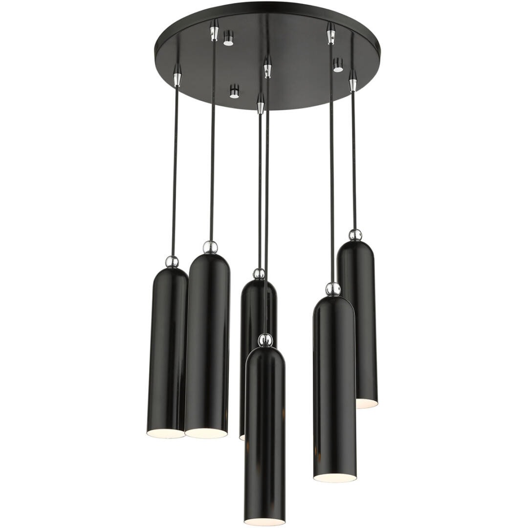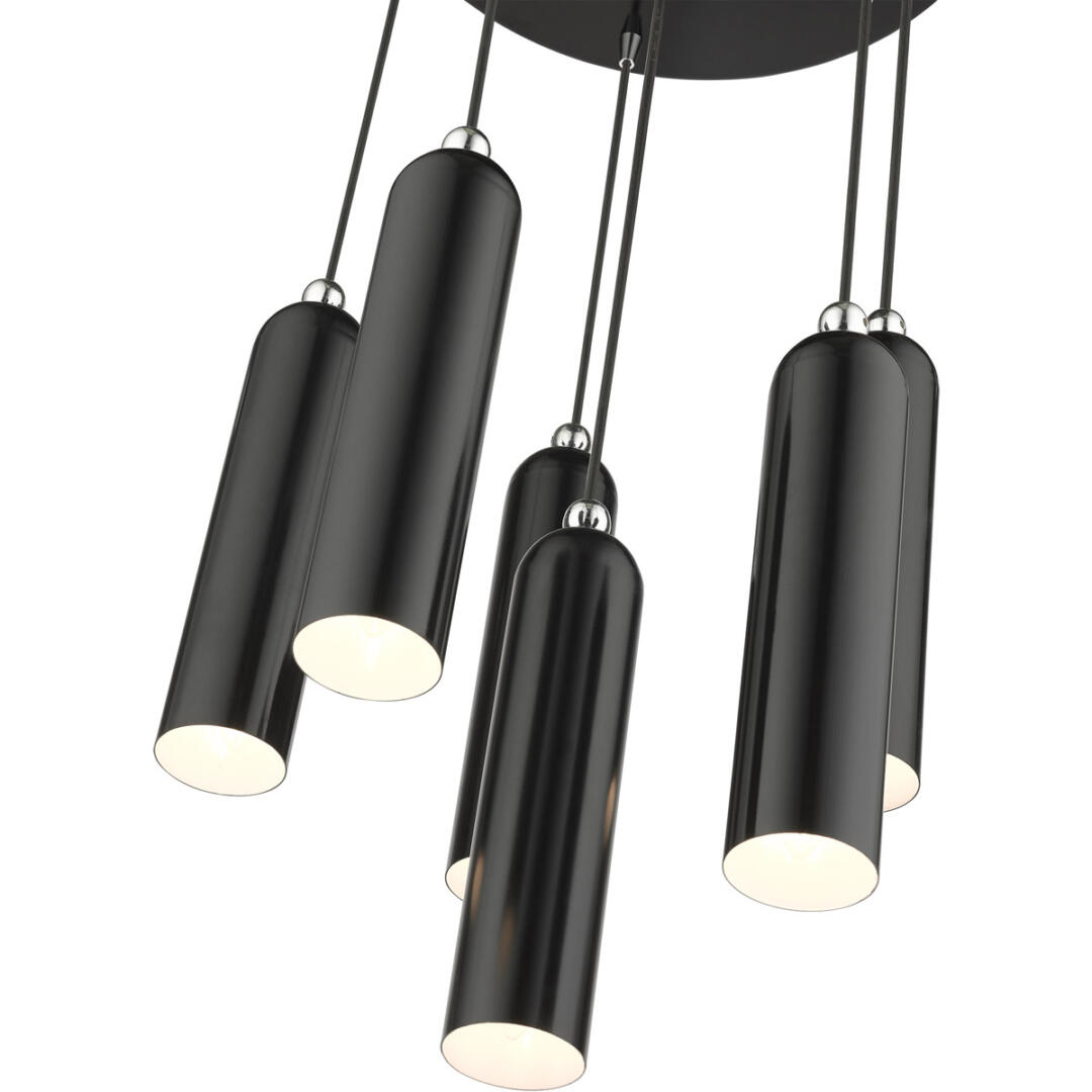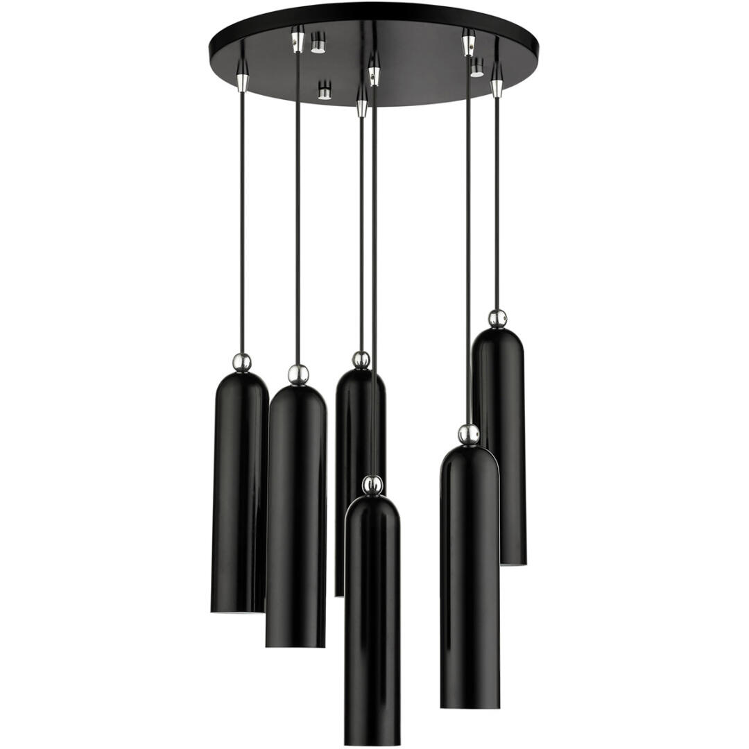 Ardmore is a high style chic mid-century modern classic collection embodying the elegant lifestyle of Scandinavian culture. The simple lines and a multitude of finishes create a well handcrafted handsome collection. This six-light shiny black finish multi-pendant is so versatile it will fit literally any style. It is perfect for a kitchen countertop, living room, foyer or a dining room.