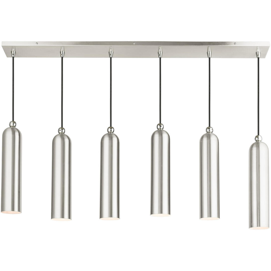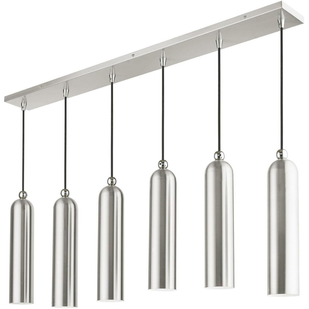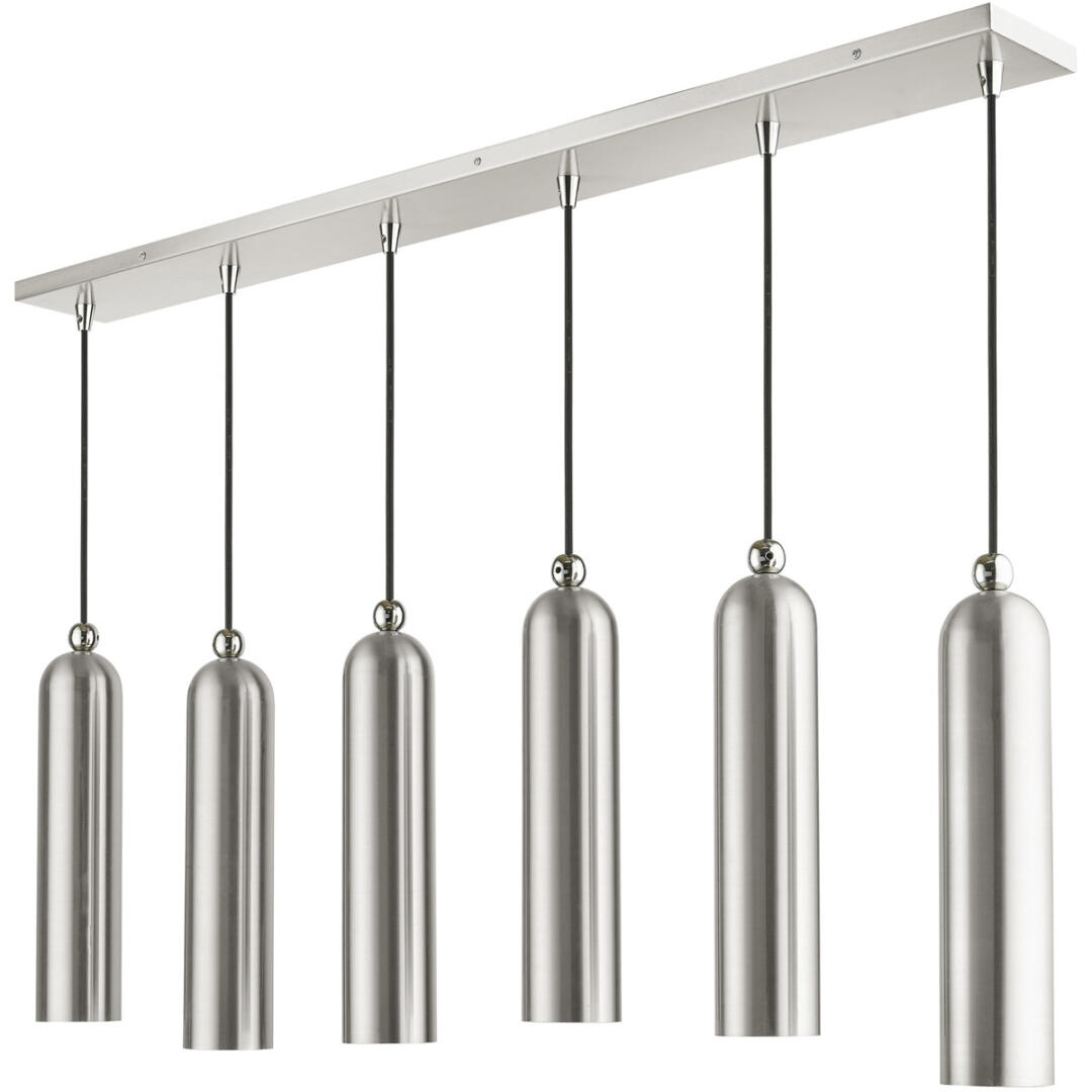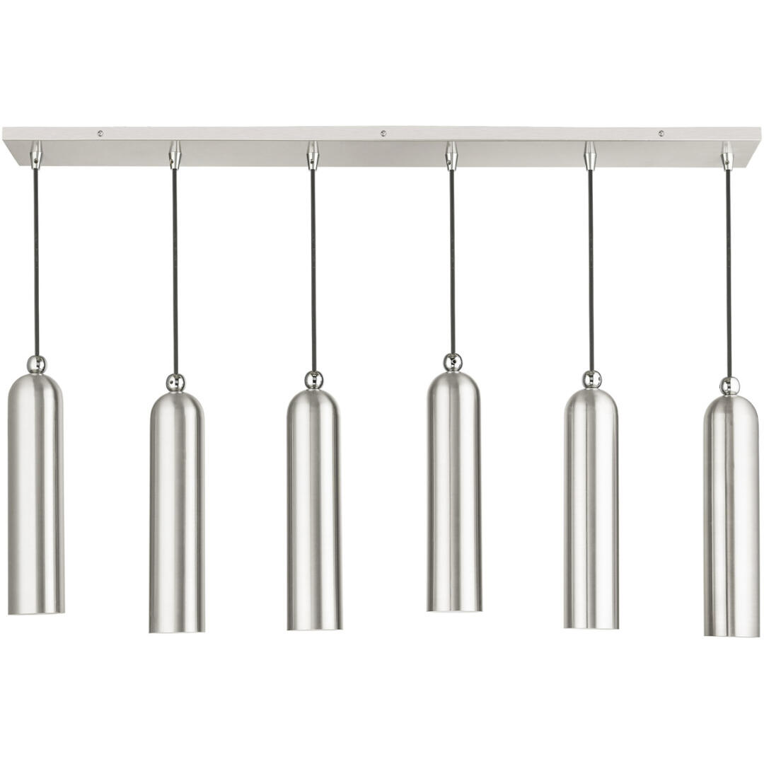 Ardmore is a high style chic mid-century modern classic collection embodying the elegant lifestyle of Scandinavian culture. The simple lines and a multitude of finishes create a well handcrafted handsome collection. This six-light brushed nickel finish linear multi-pendant is so versatile it will fit literally any style. It is perfect for a kitchen countertop or a dining room.