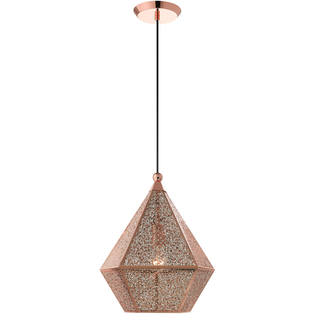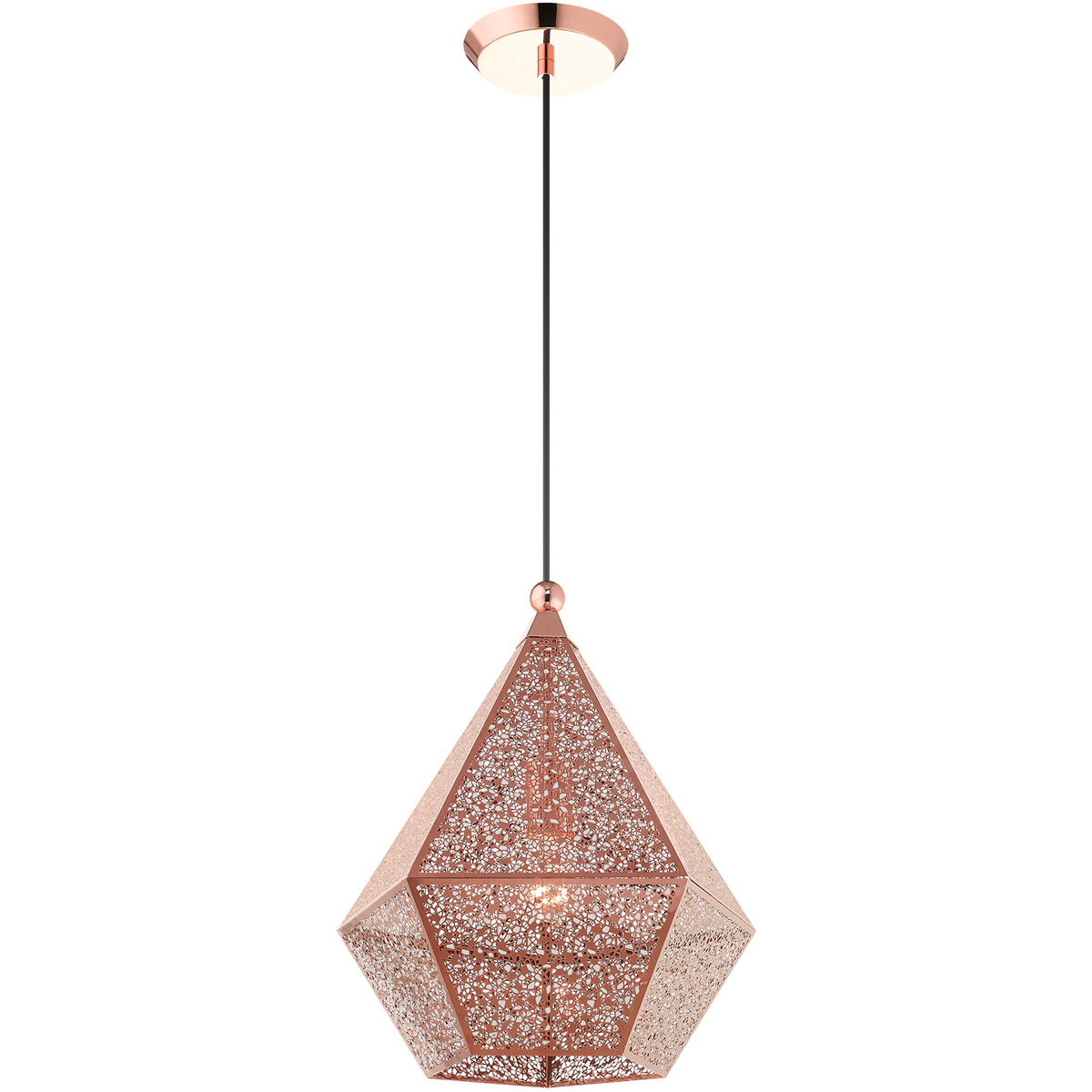 Aberdeen features a beautiful rose gold finish. Light artfully reflects and refracts through the filigreed elements to provide a dramatic focal point to any room. This medium one-light pendant will add an unmistakable touch of elegance to your dining room, kitchen or a bedroom.