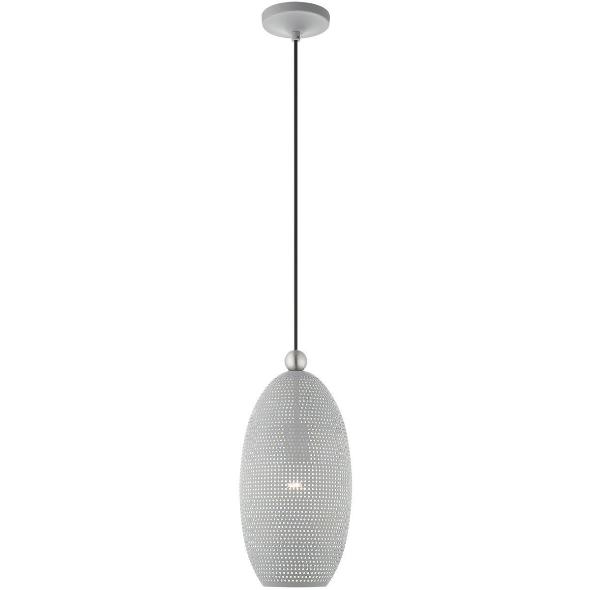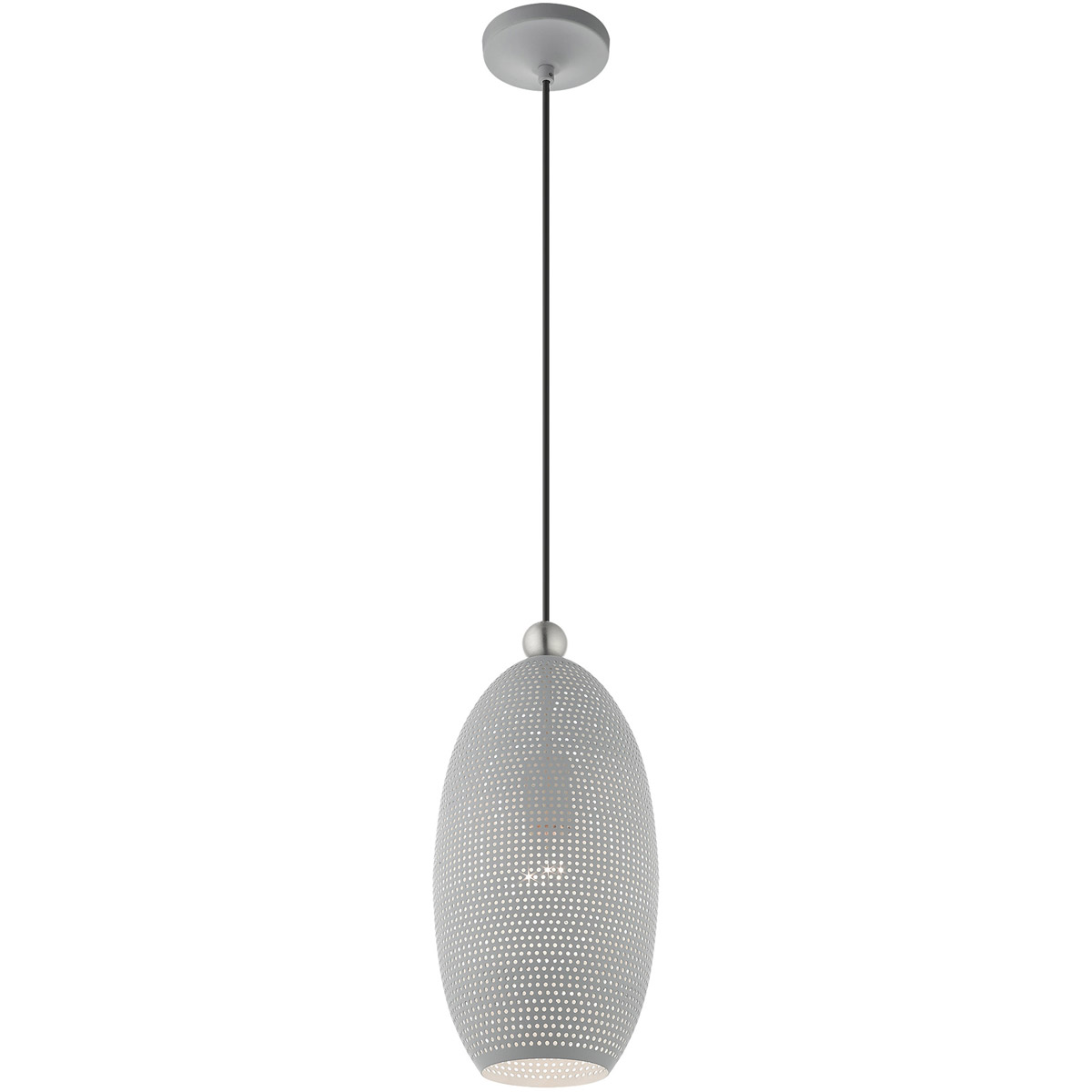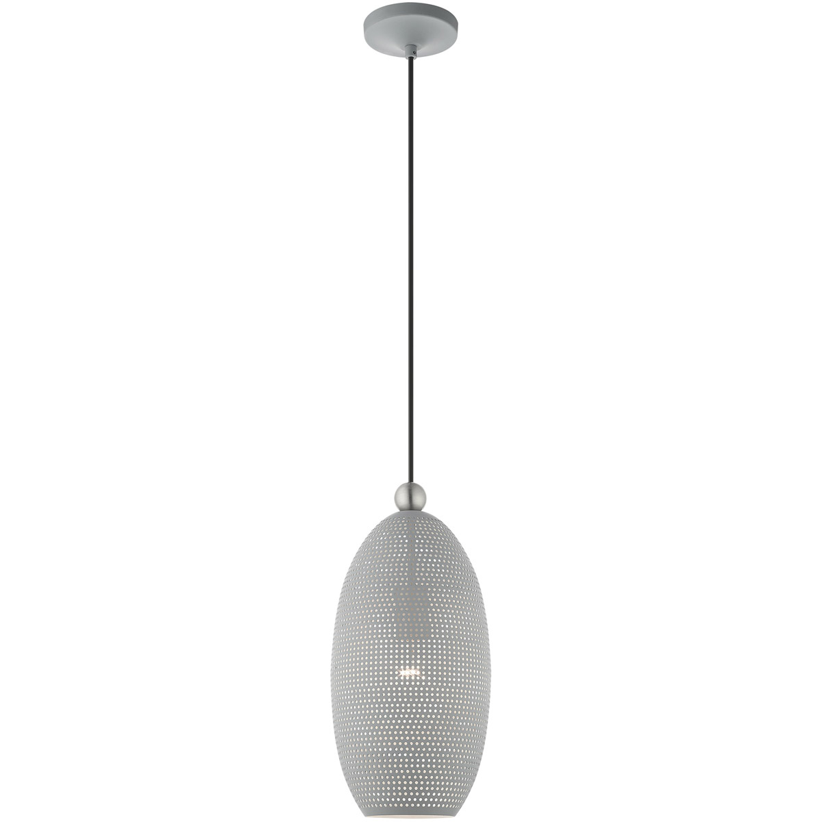 Dublin features a beautiful Nordic gray finish with brushed nickel finish accents. Light artfully reflects and refracts through the ornamental elements to provide a dramatic focal point to any room. This small one-light metal shade pendant will add an unmistakable touch of elegance to your dining room, kitchen or bedroom.