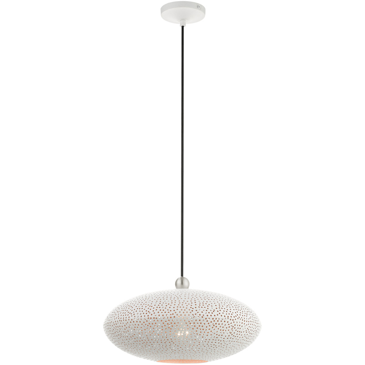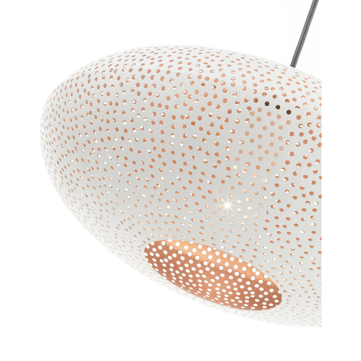 1. Stylish design: Our pendant light features an elegant white ornamental metal shade with a stunning gold finish on the inside, adding a touch of luxury to any space.