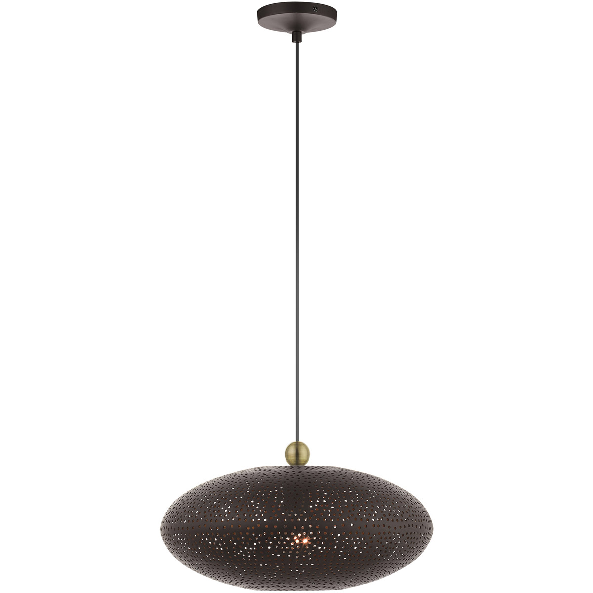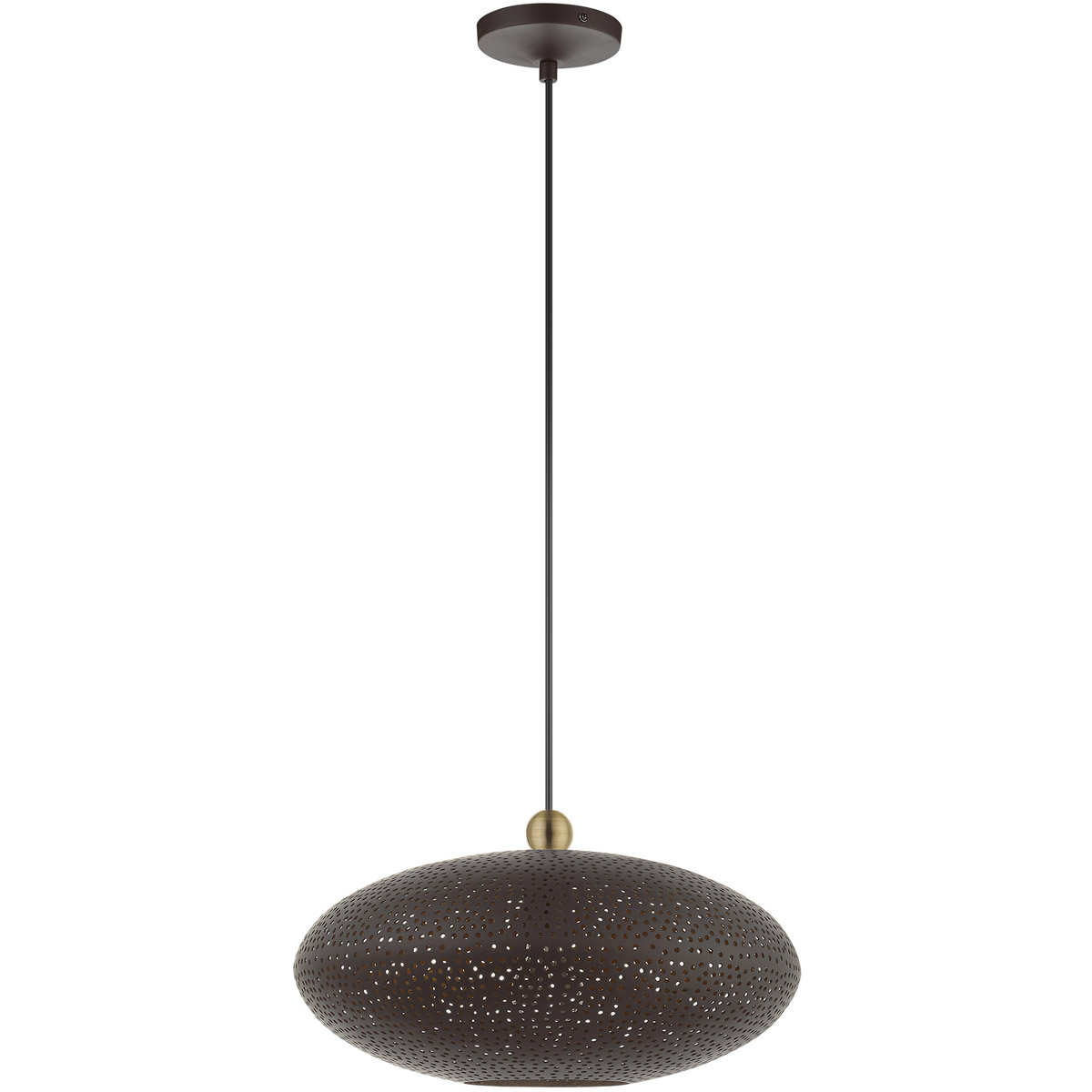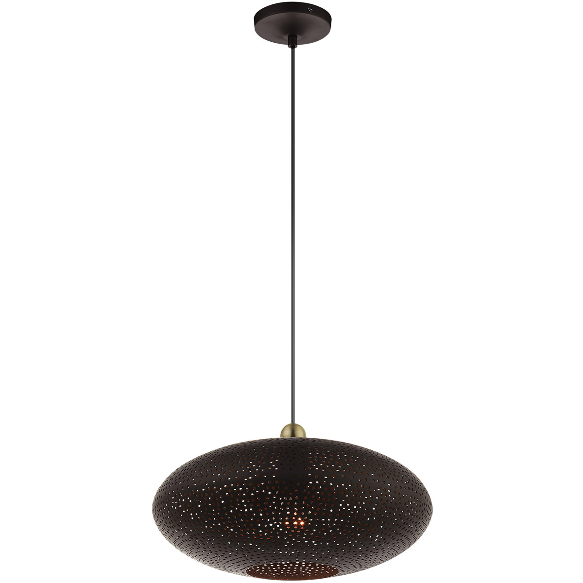 Dublin features a beautiful bronze finish with antique brass finish accents. Light artfully reflects and refracts through the ornamental elements to provide a dramatic focal point to any room. This small one-light metal shade pendant will add an unmistakable touch of elegance to your dining room, kitchen or bedroom.