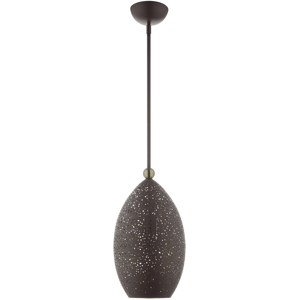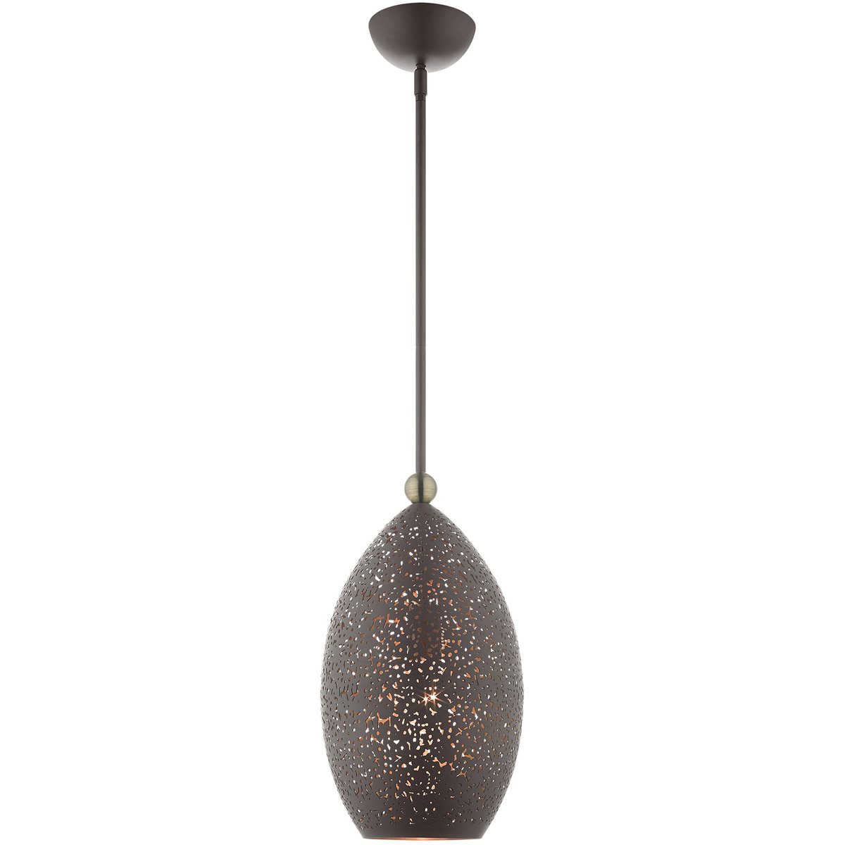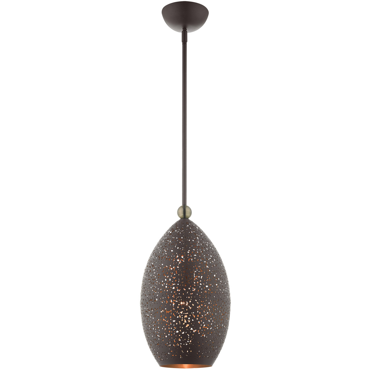 1 Light Bronze Pendant light Hanging Light Fixture with Bronze Filigreed Ornamental Metal with Gold finish Inside Shade-Lighting Lumens