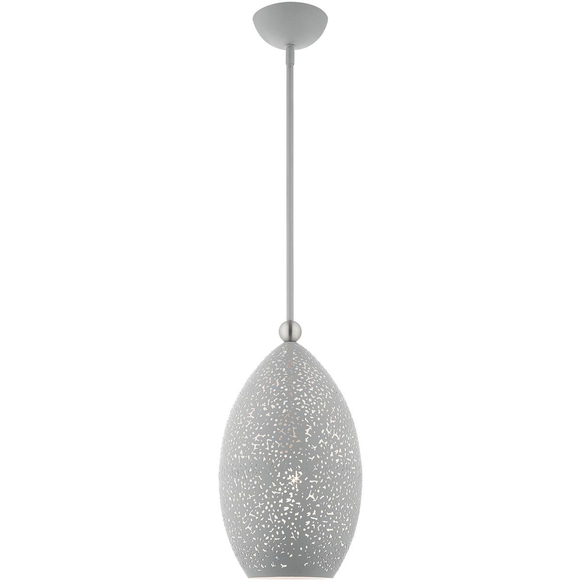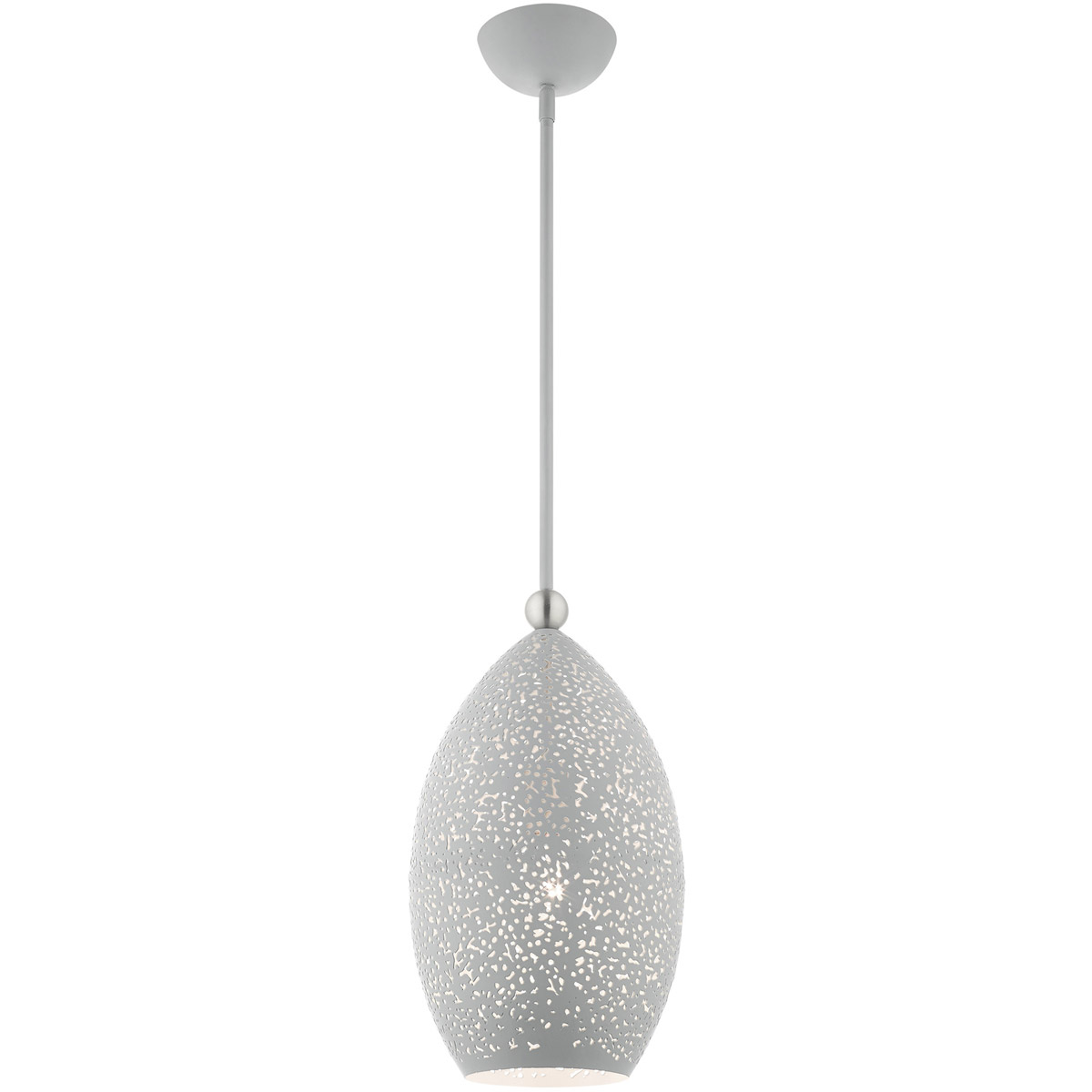 A mini pendant that makes a bold statement in your kitchen, bath or bar area, we present the Charlton. The dynamic design of Nordic gray outside, white inside and brushed nickel accents give this mini pendant a transitional look and feel.
