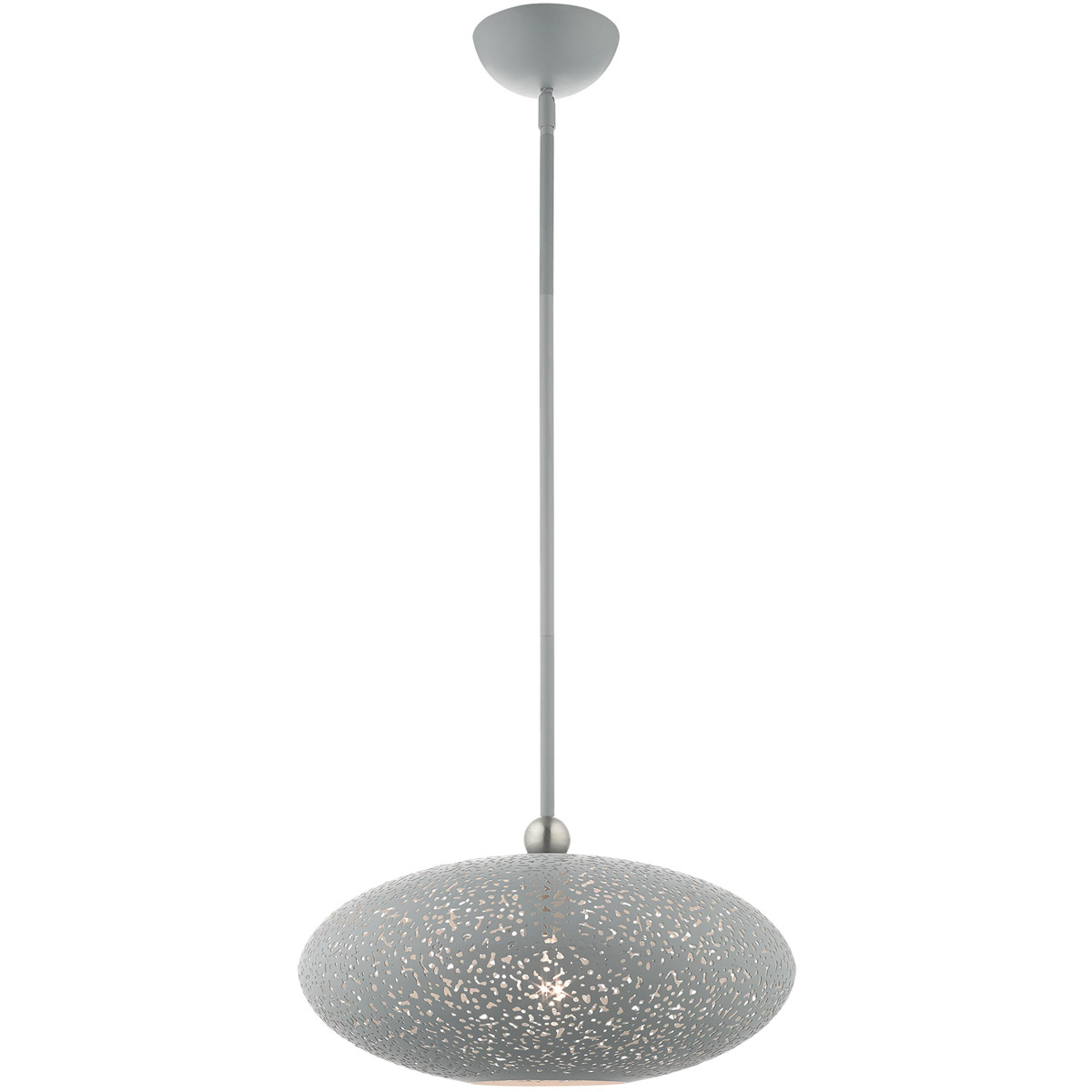 | Glass/Shade Type: Nordic Gray Filigreed Metal Shade with White finish Inside | Diameter: 15.875 |