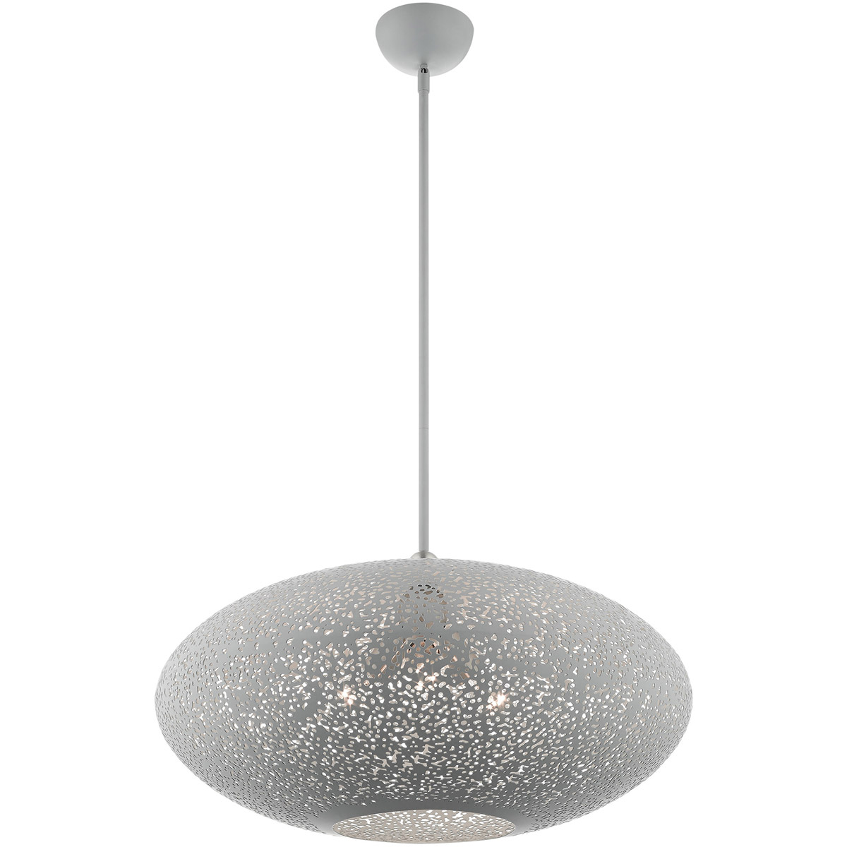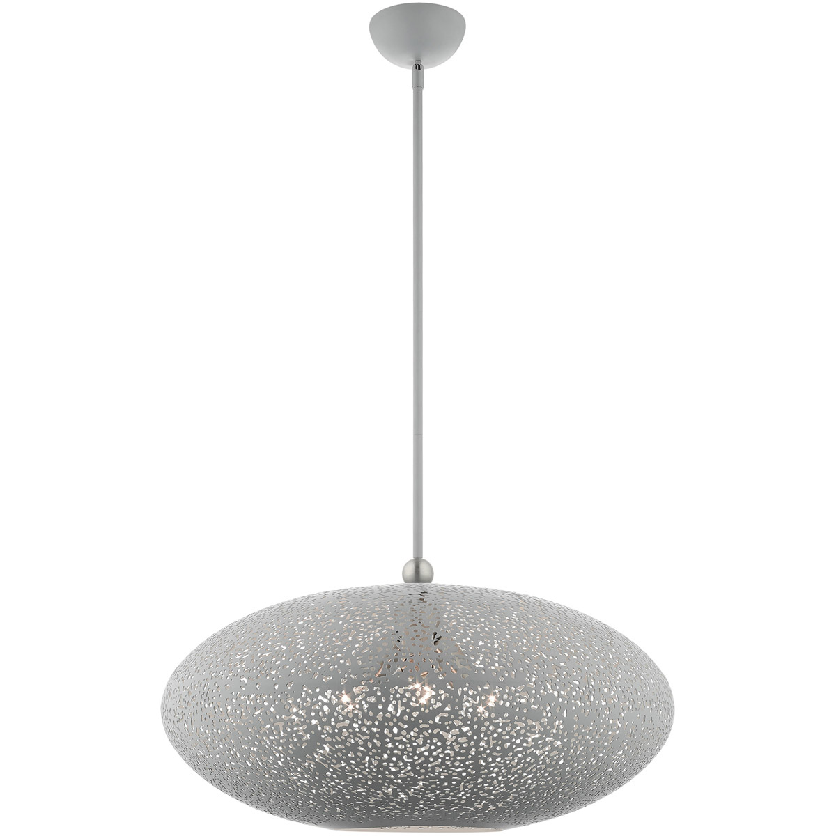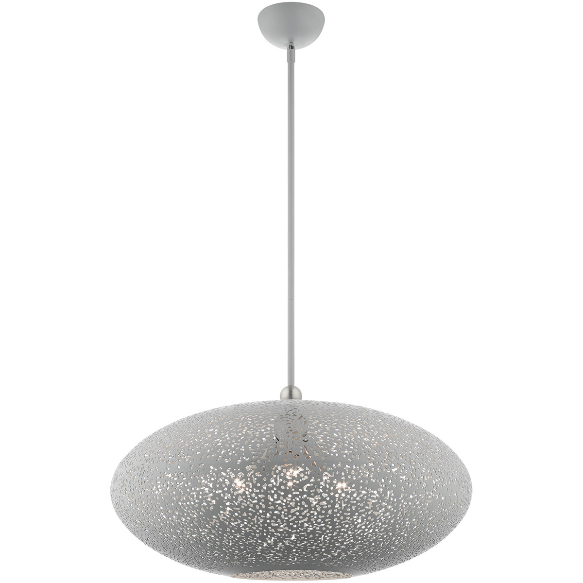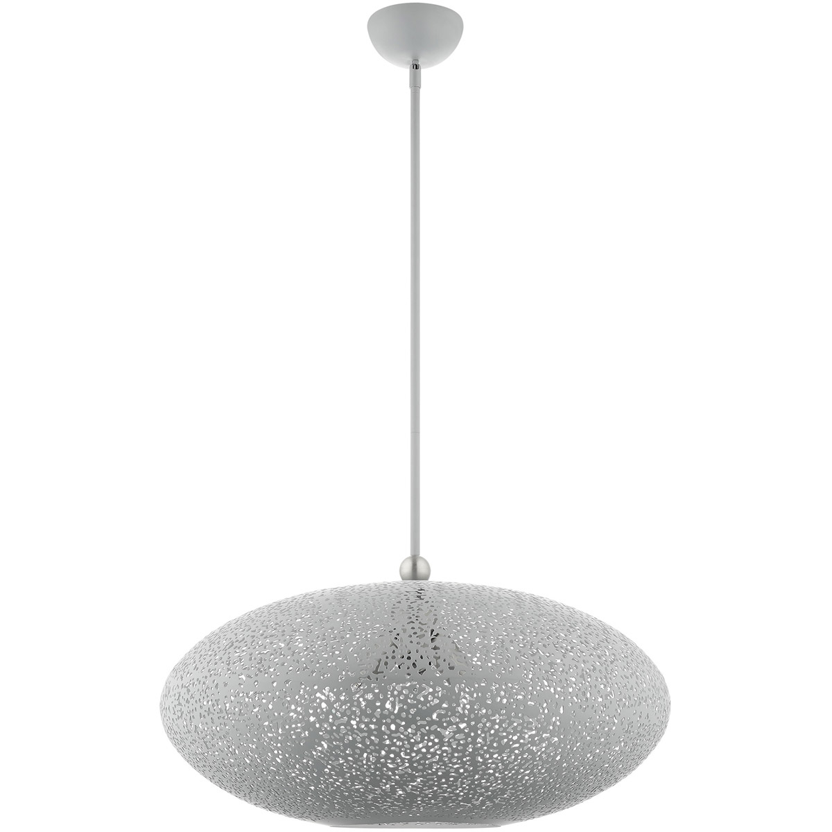 | Glass/Shade Type: Nordic Gray Filigreed Metal Shade with White finish Inside | Diameter: 24 |
