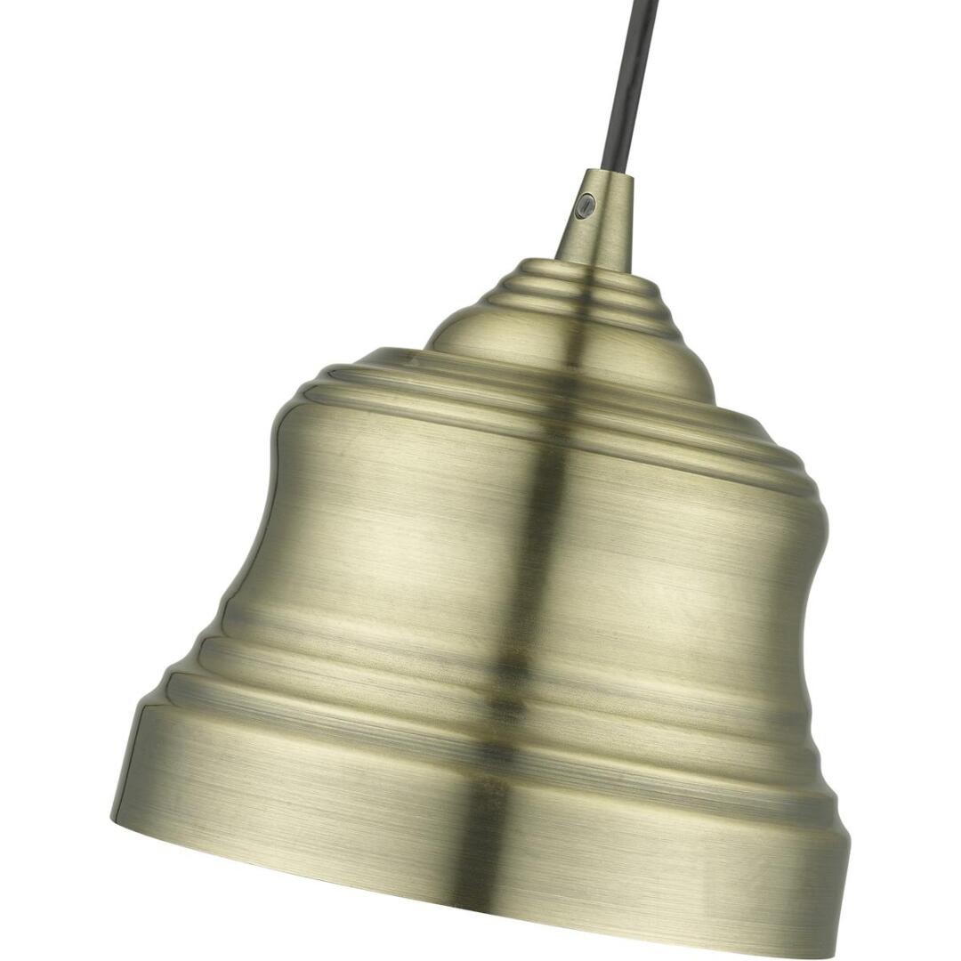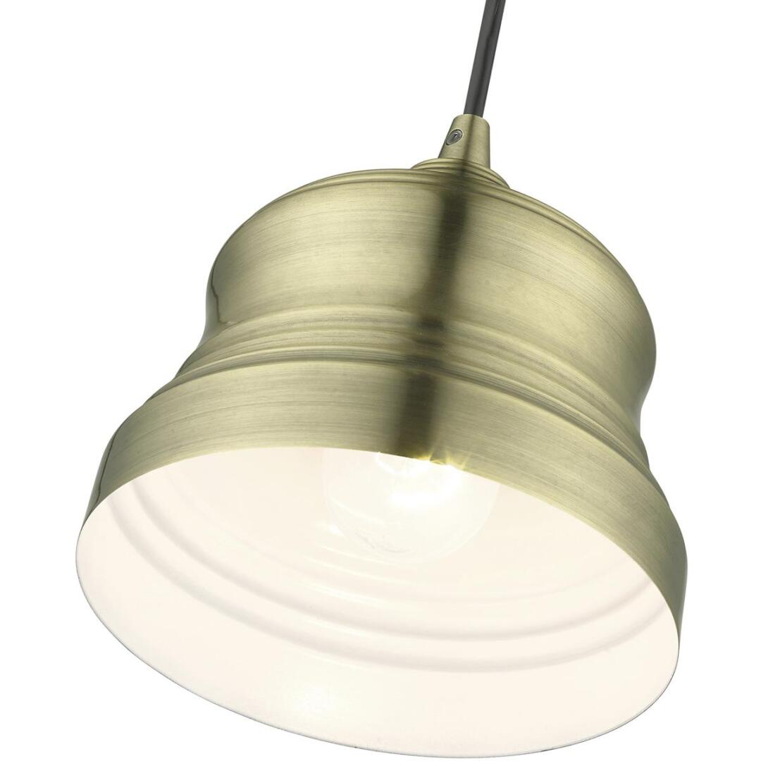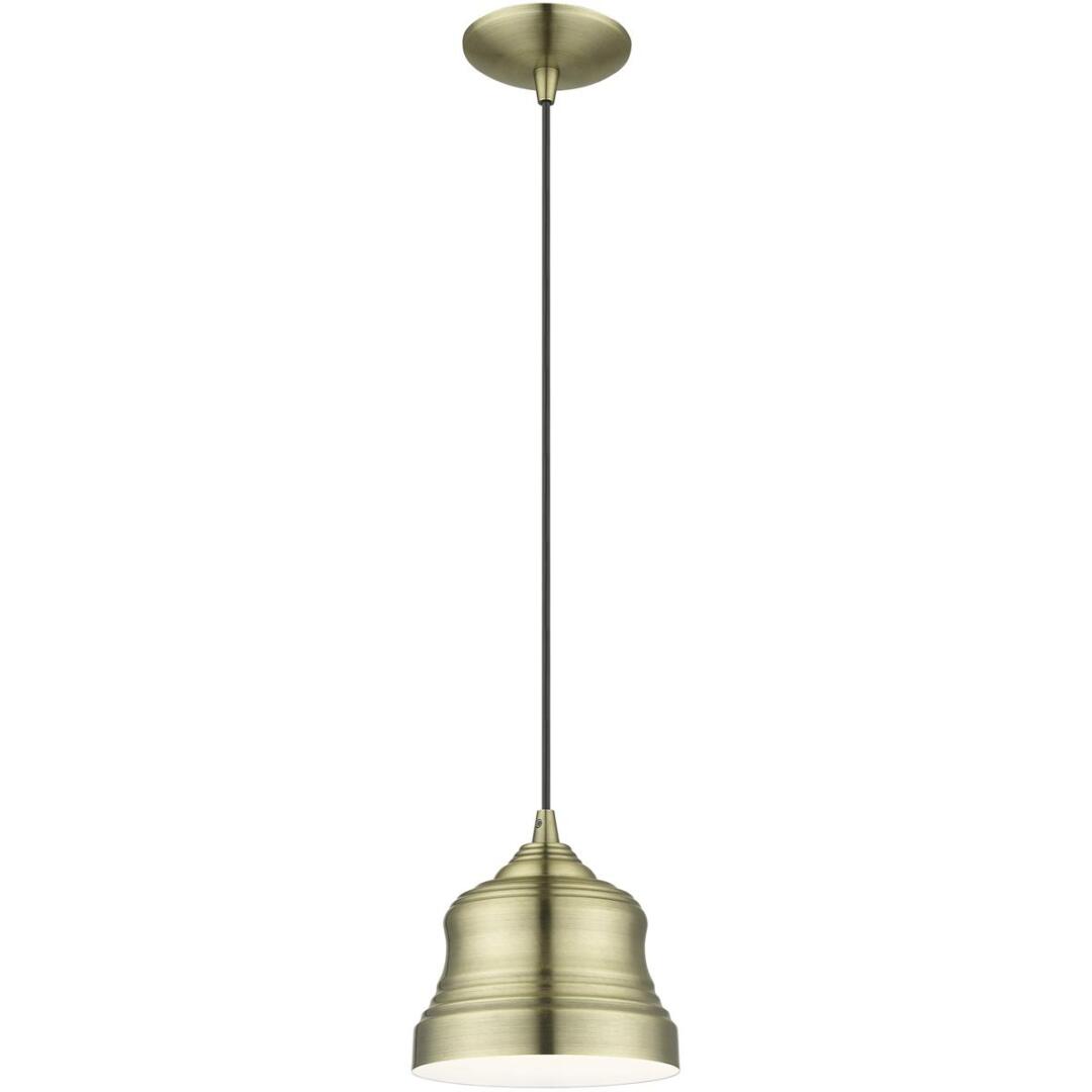 The clean and crisp Endicott bell pendant makes a design statement with the smooth curve of its antique brass finish shade. A gleaming shiny white finish on the interior of the metal shade brings a refined touch of style.