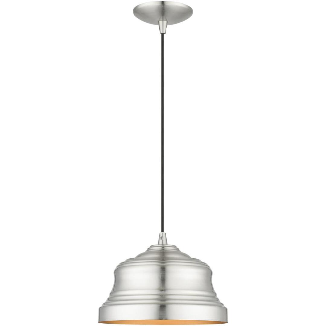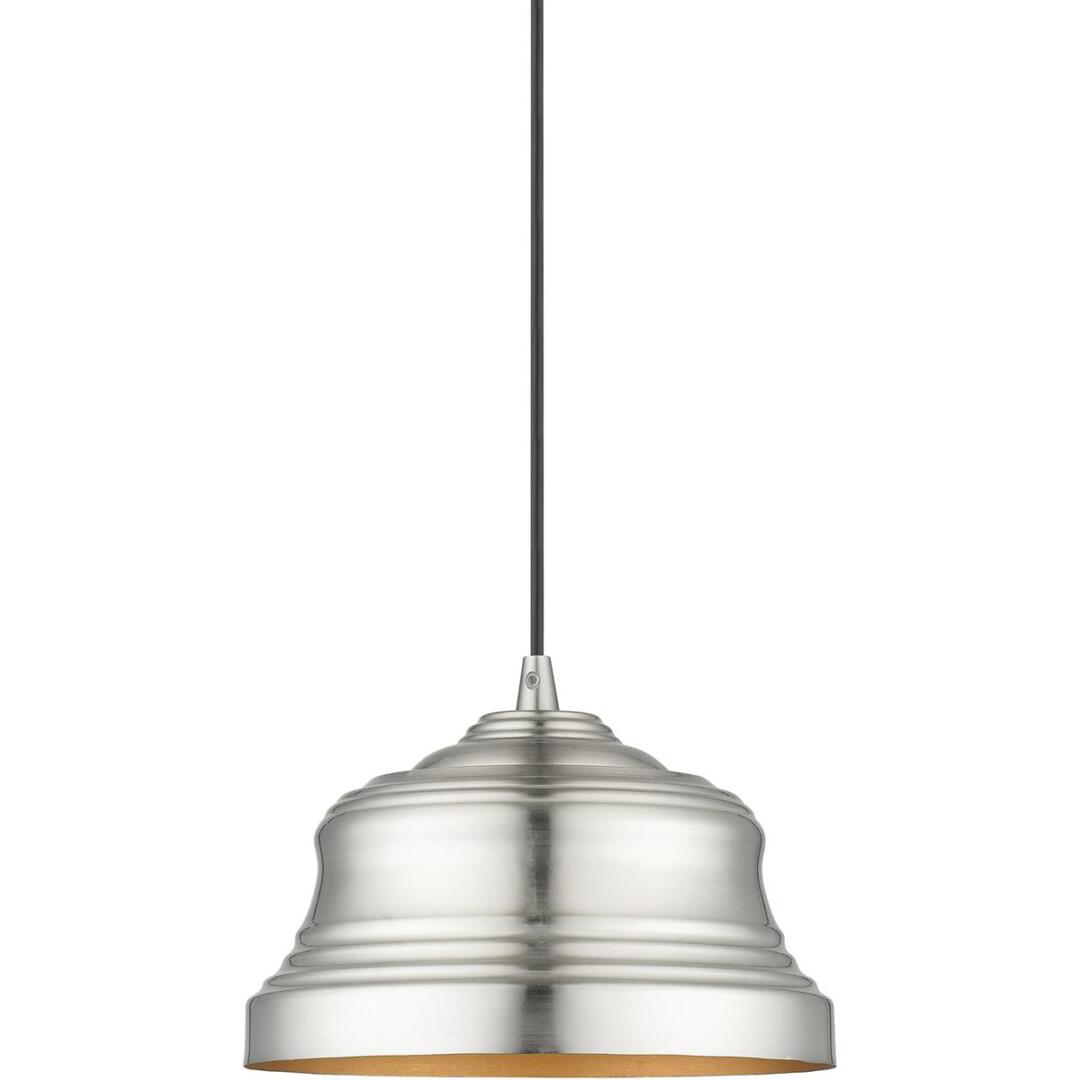 The clean and crisp Endicott bell pendant makes a design statement with the smooth curve of its brushed nickel finish shade. A gold finish on the interior of the metal shade brings a refined touch of style.