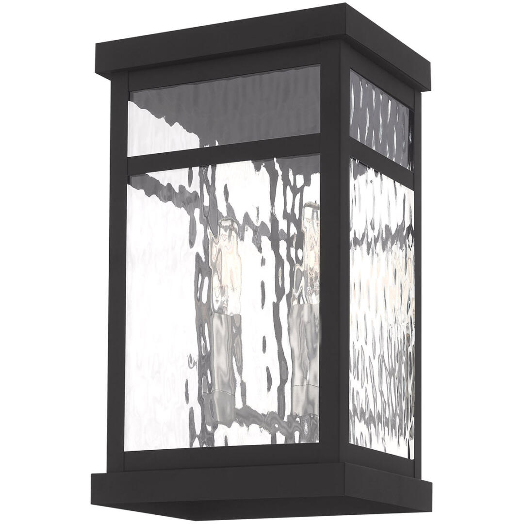 8.25 inch 3 Light Black Outdoor Wall Lantern Pendant Lighting Fixture with Clear Water Glass Shade-Lighting Lumens