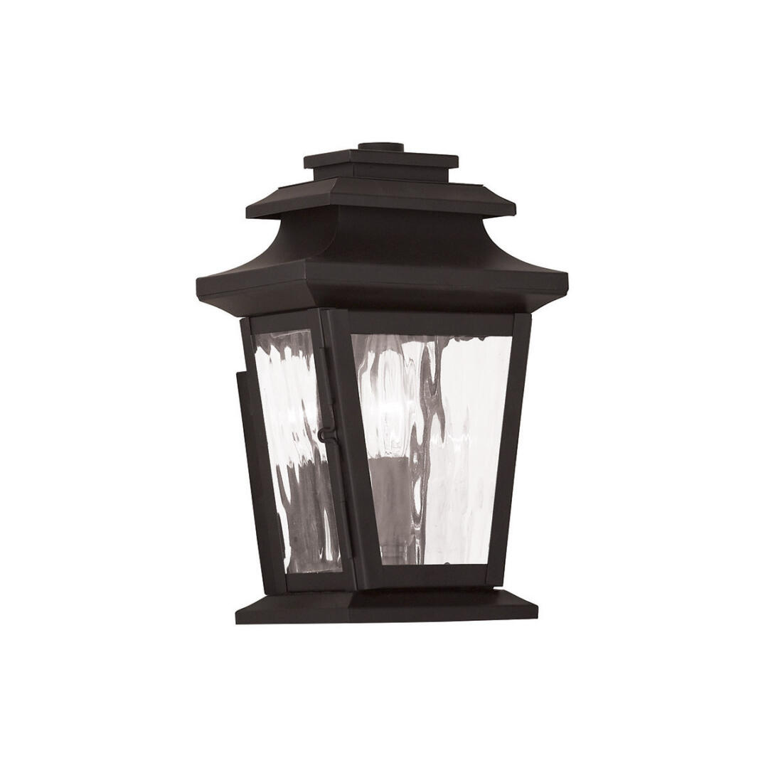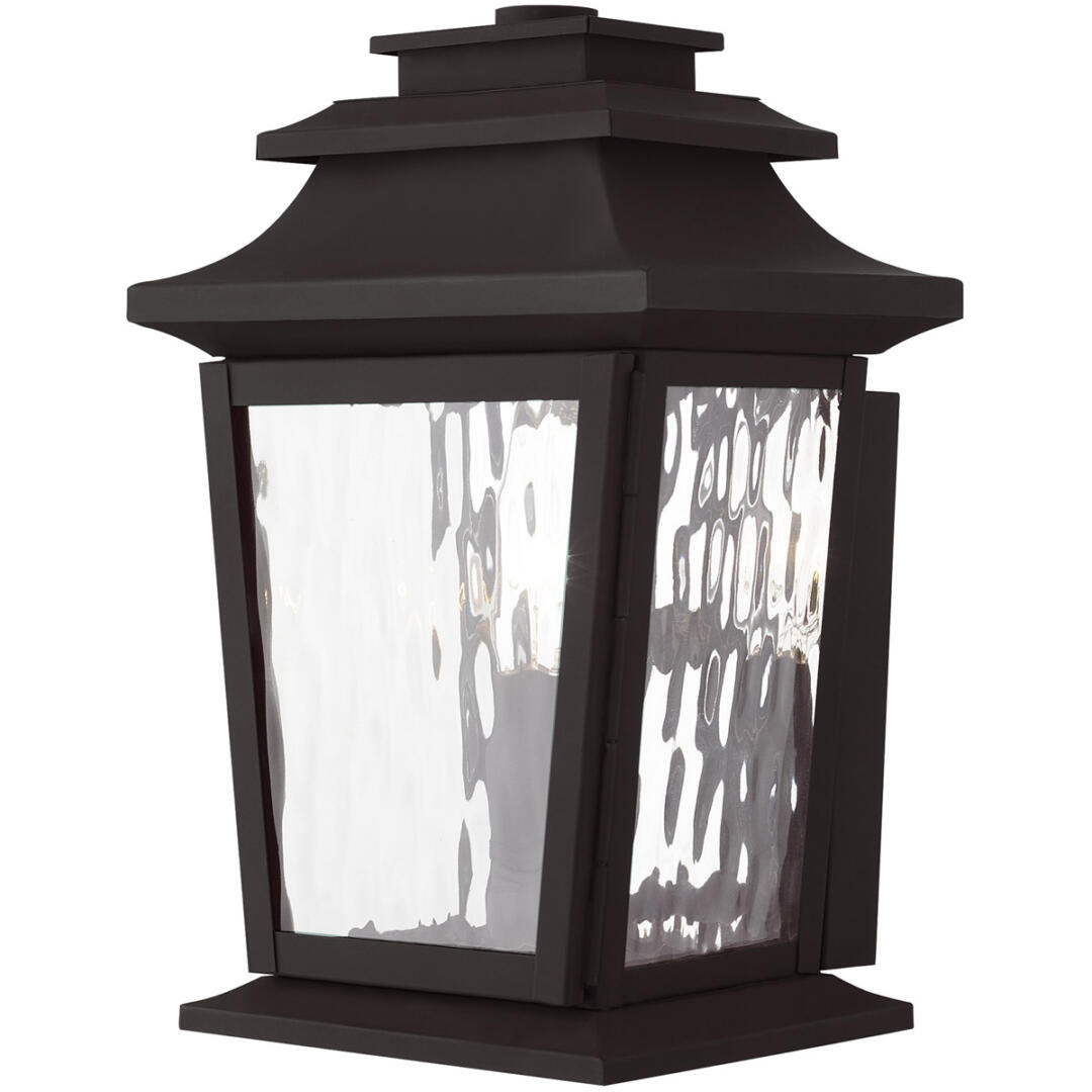 10.625 inch 3 Light Bronze Outdoor Wall Lantern Pendant Lighting Fixture with Clear Water Glass Shade-Lighting Lumens