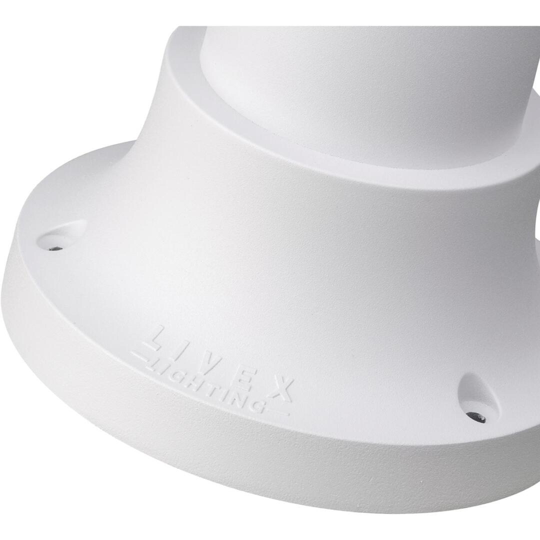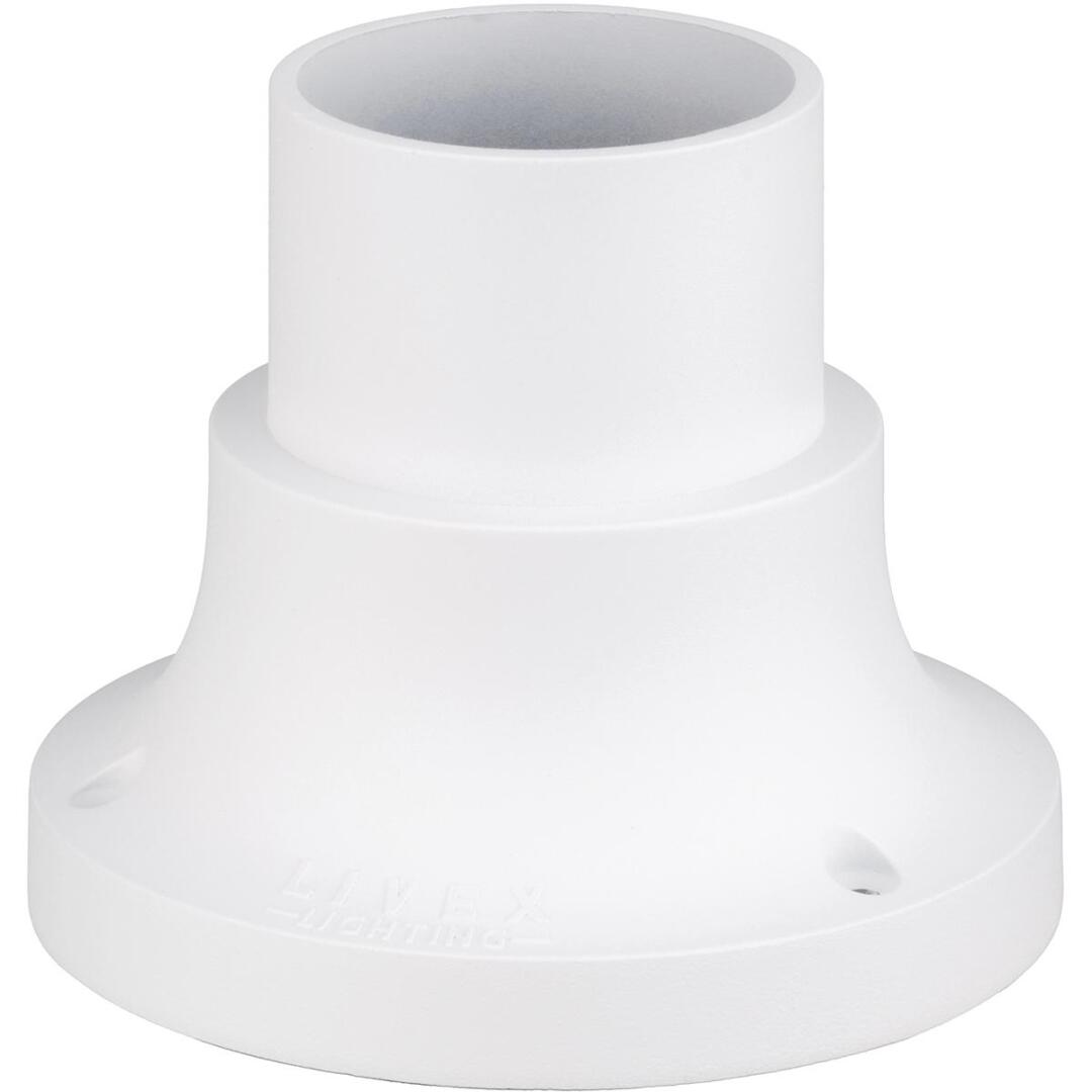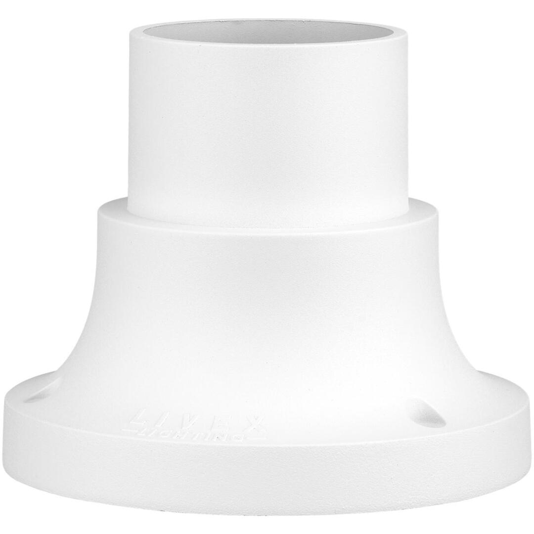 This outdoor textured white finish pier mount adaptor is intended for use with post lanterns for pier mount applications. The post lantern (not included) slips over the mount, creating a clean and streamlined look. Made of cast aluminum.