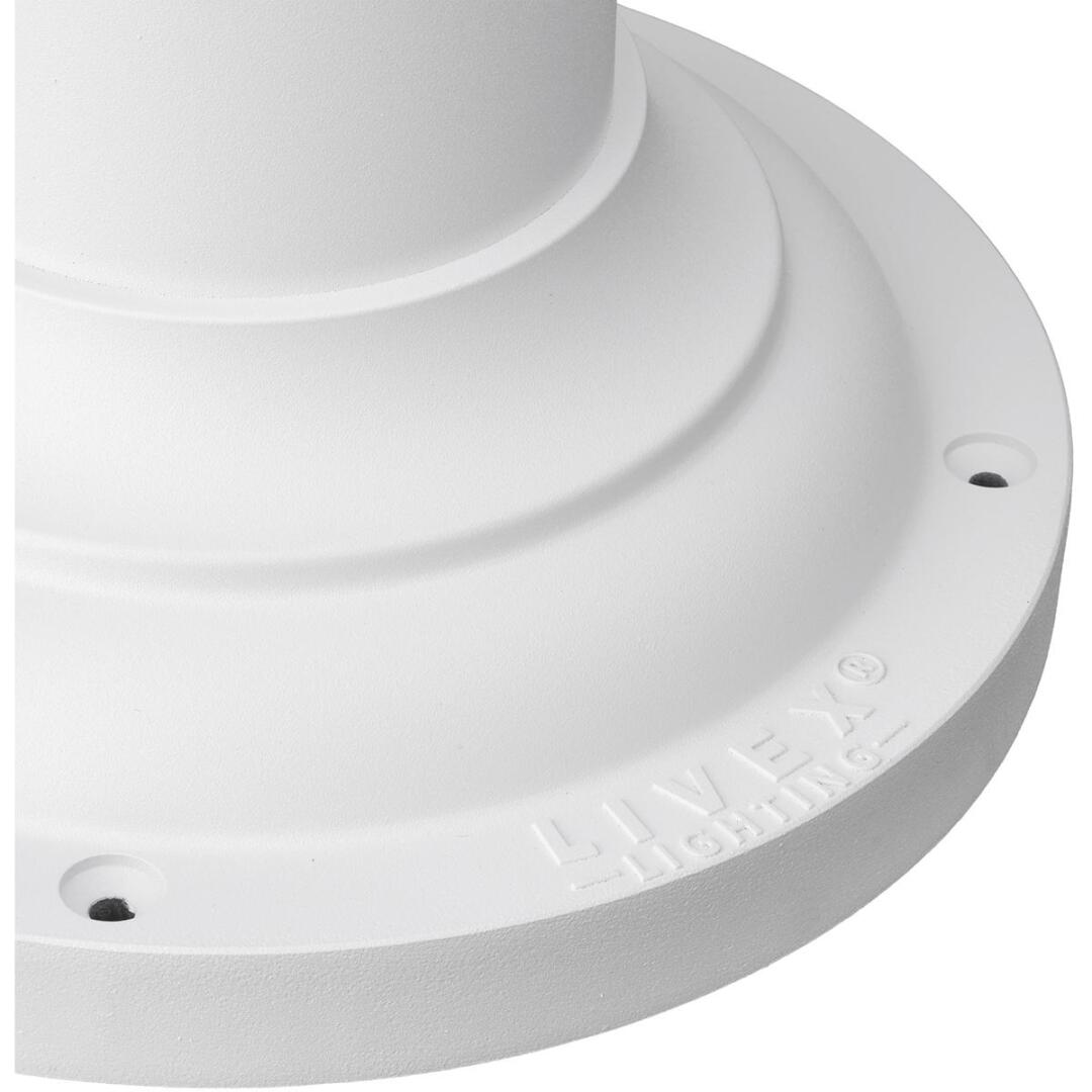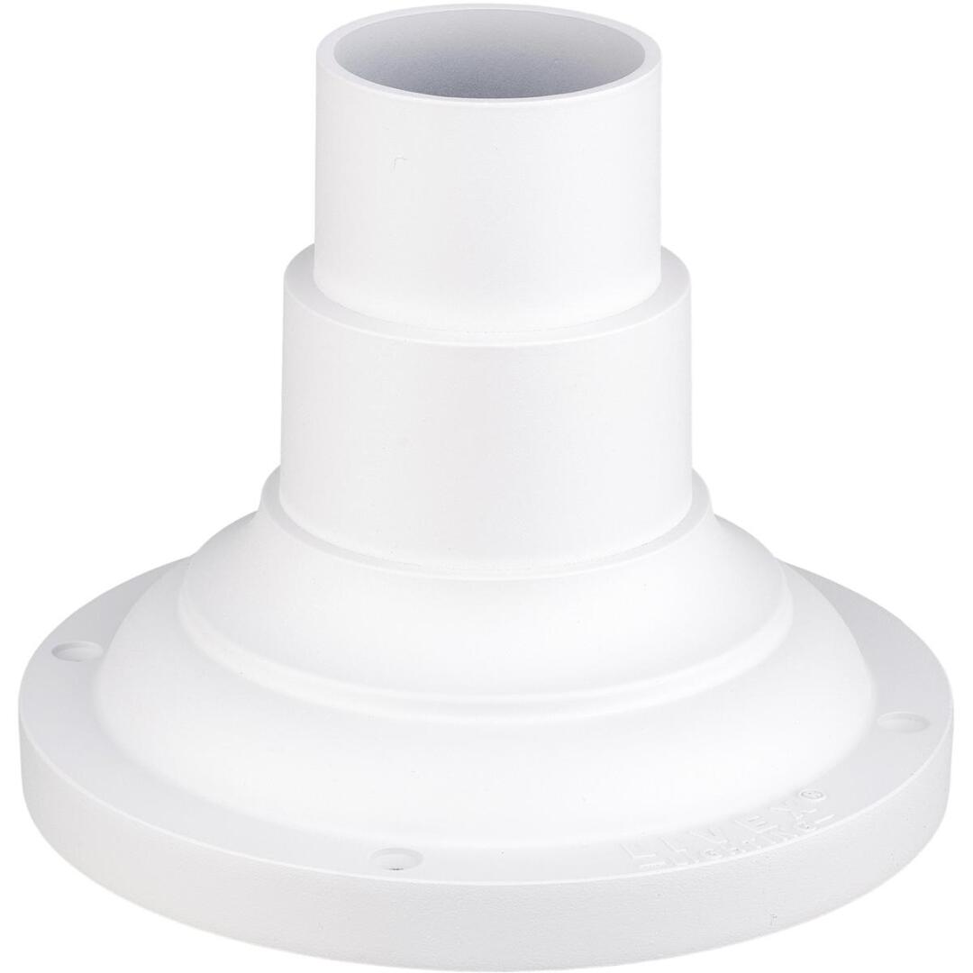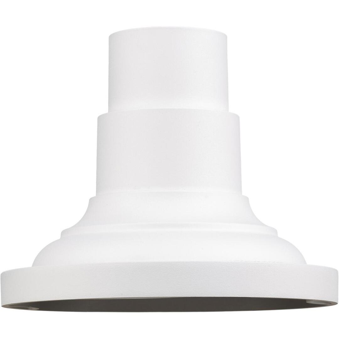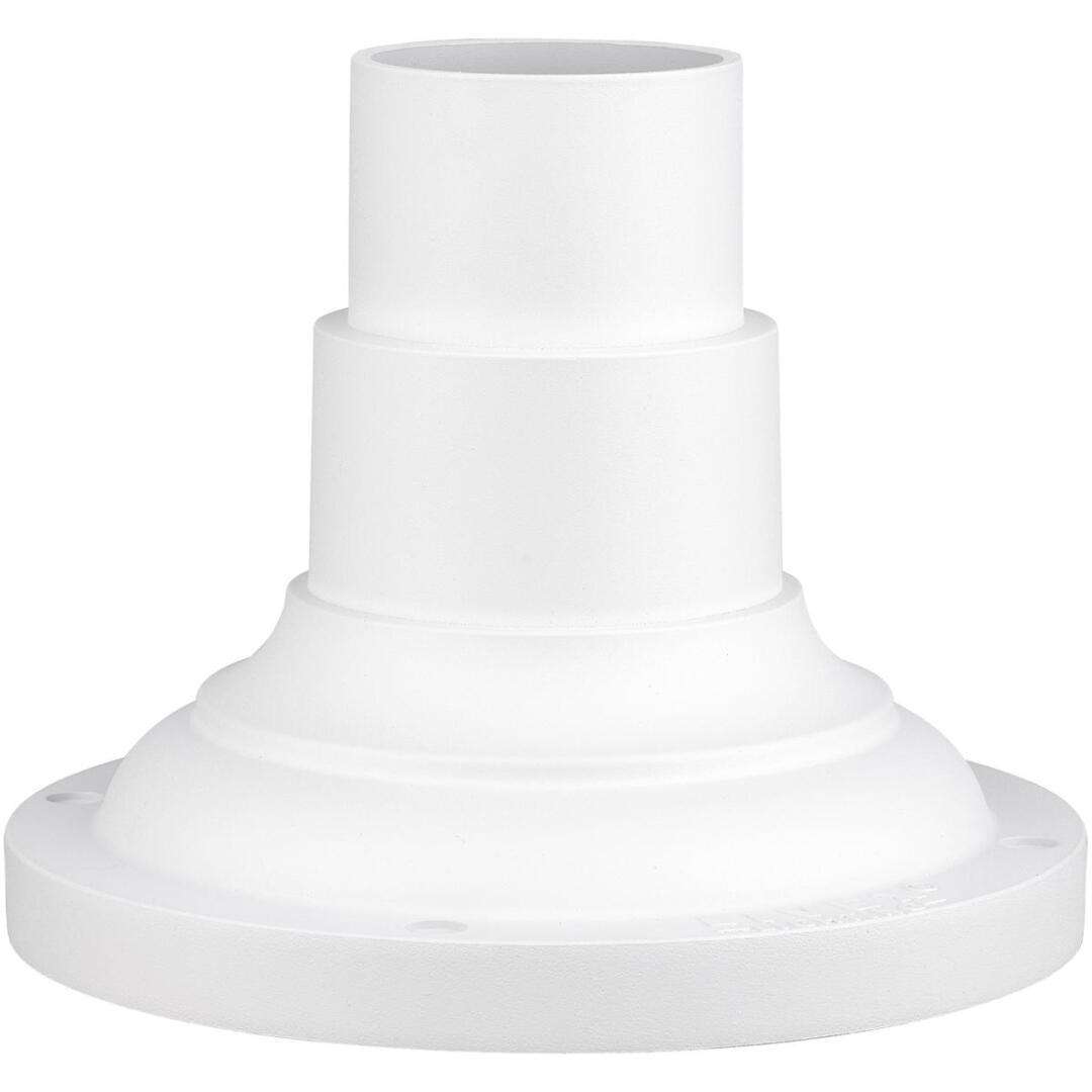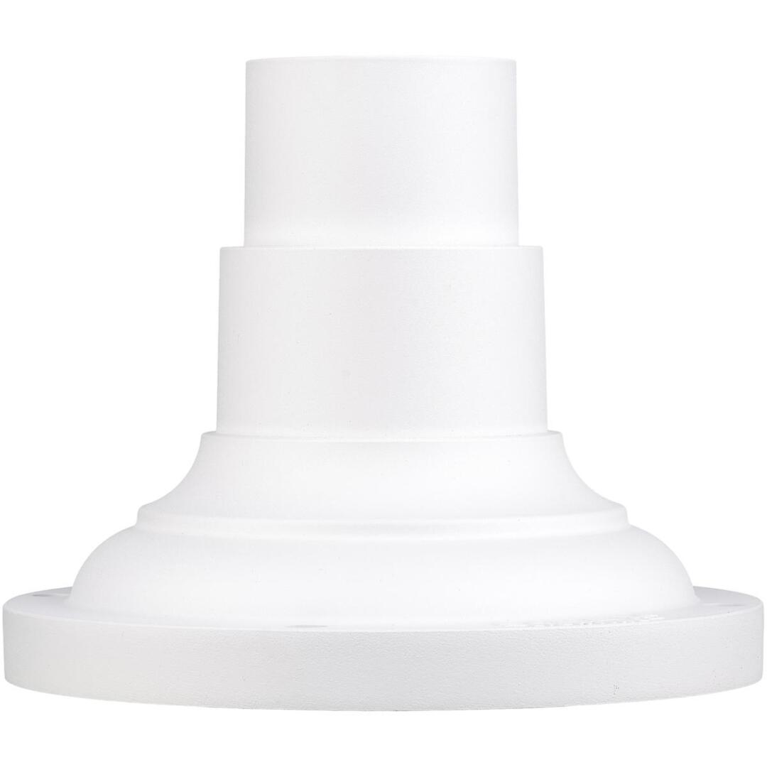 This outdoor textured white finish pier mount adaptor is intended for use with post lanterns for pier mount applications. The post lantern (not included) slips over the mount, creating a clean and streamlined look. Made of cast aluminum.