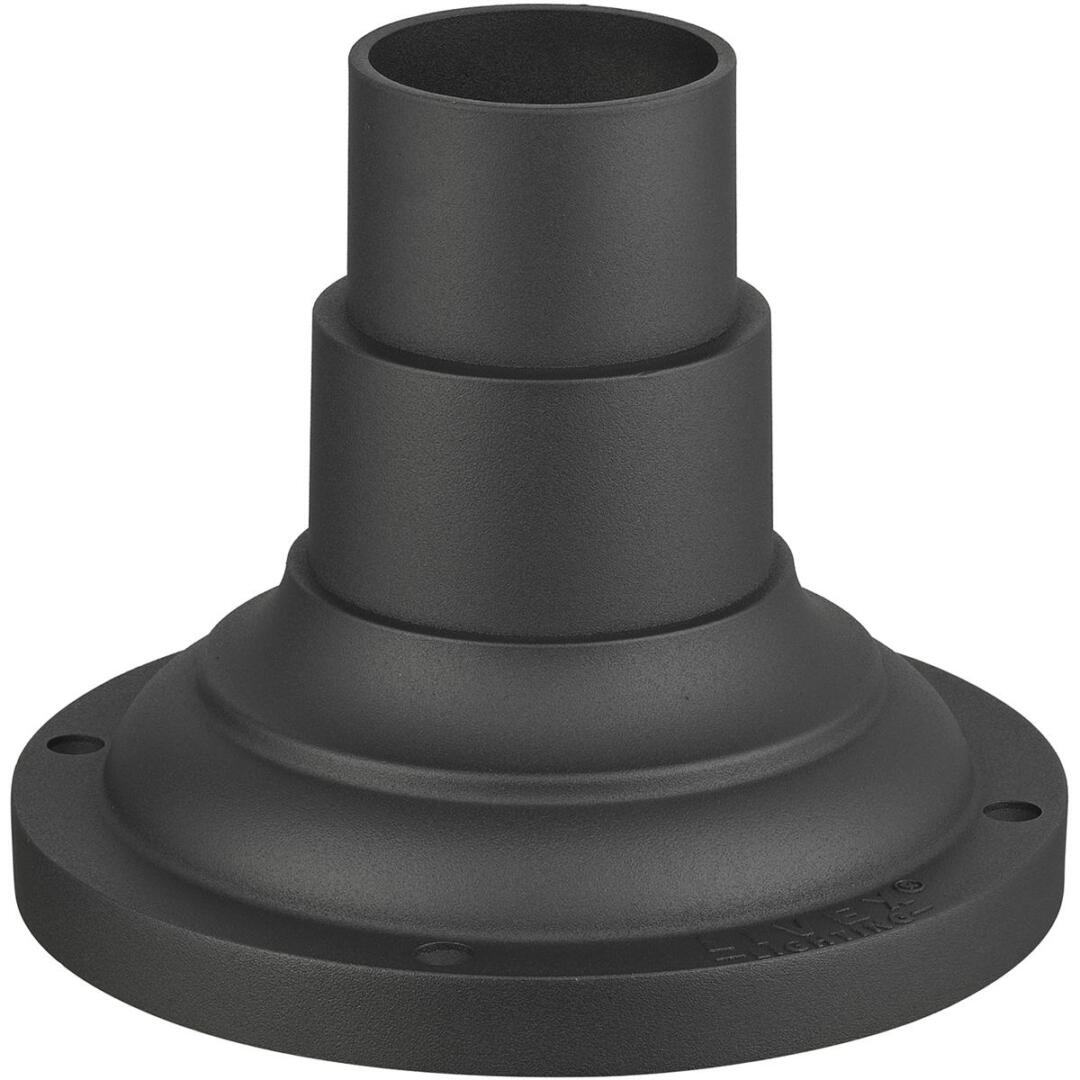 This outdoor textured black finish pier mount adaptor is intended for use with post lanterns for pier mount applications. The post lantern (not included) slips over the mount, creating a clean and streamlined look. Made of cast aluminum.