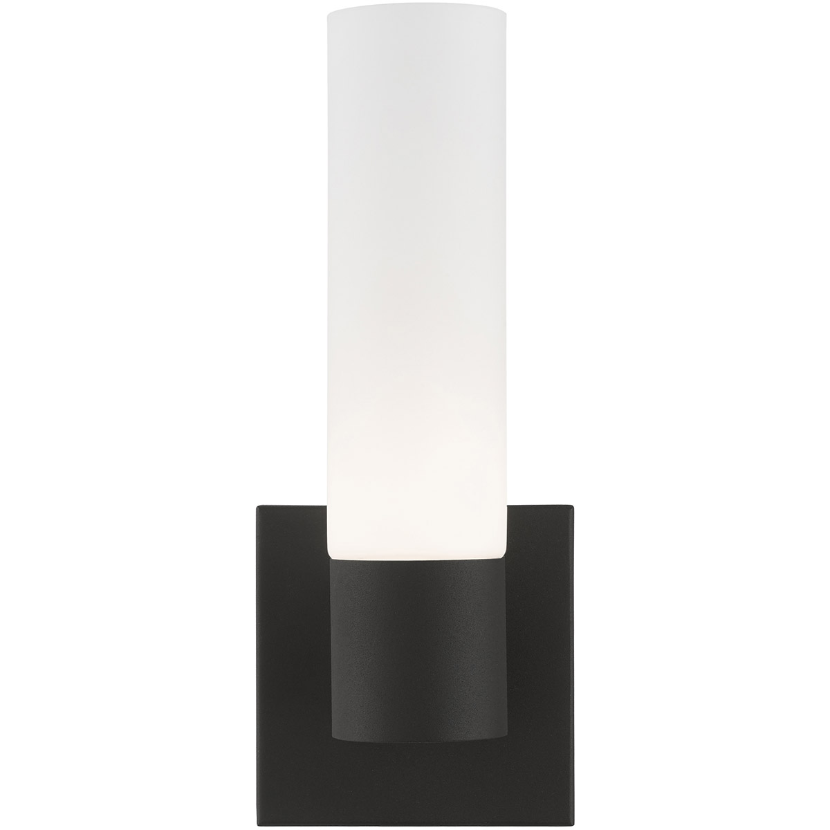With the sleek contemporary design, the Aero bath sconce casts a soft, flattering light as the tubular etched opal glass diffuses the light of one lamp.