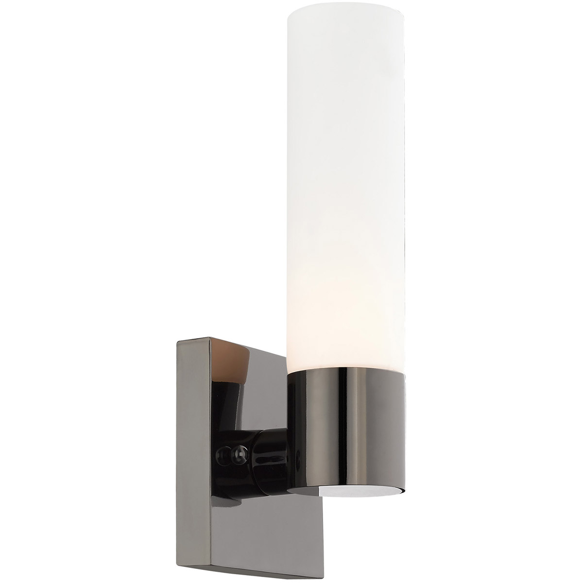 With the sleek contemporary design, the Aero bath bar casts a soft, flattering light as the tubular etched opal glass diffuses the light of one lamp. Available in antique brass, polished brass, polished chrome, satin brass, black chrome or brushed nickel.