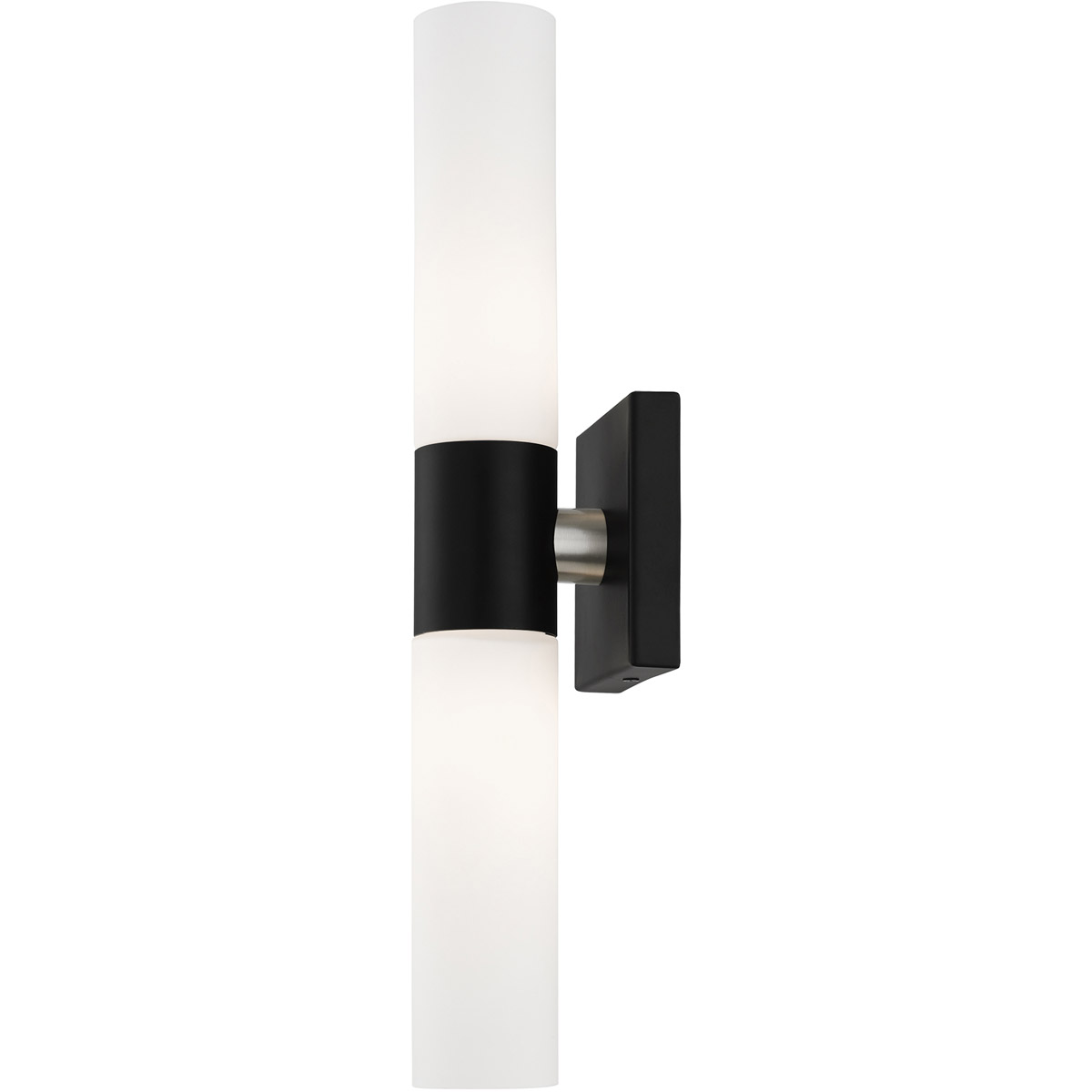 With the sleek contemporary design, the Aero bath bar casts a soft, flattering light which can be mounted horizontally or vertically. The tubular etched opal glass diffuses the light of two lamps.