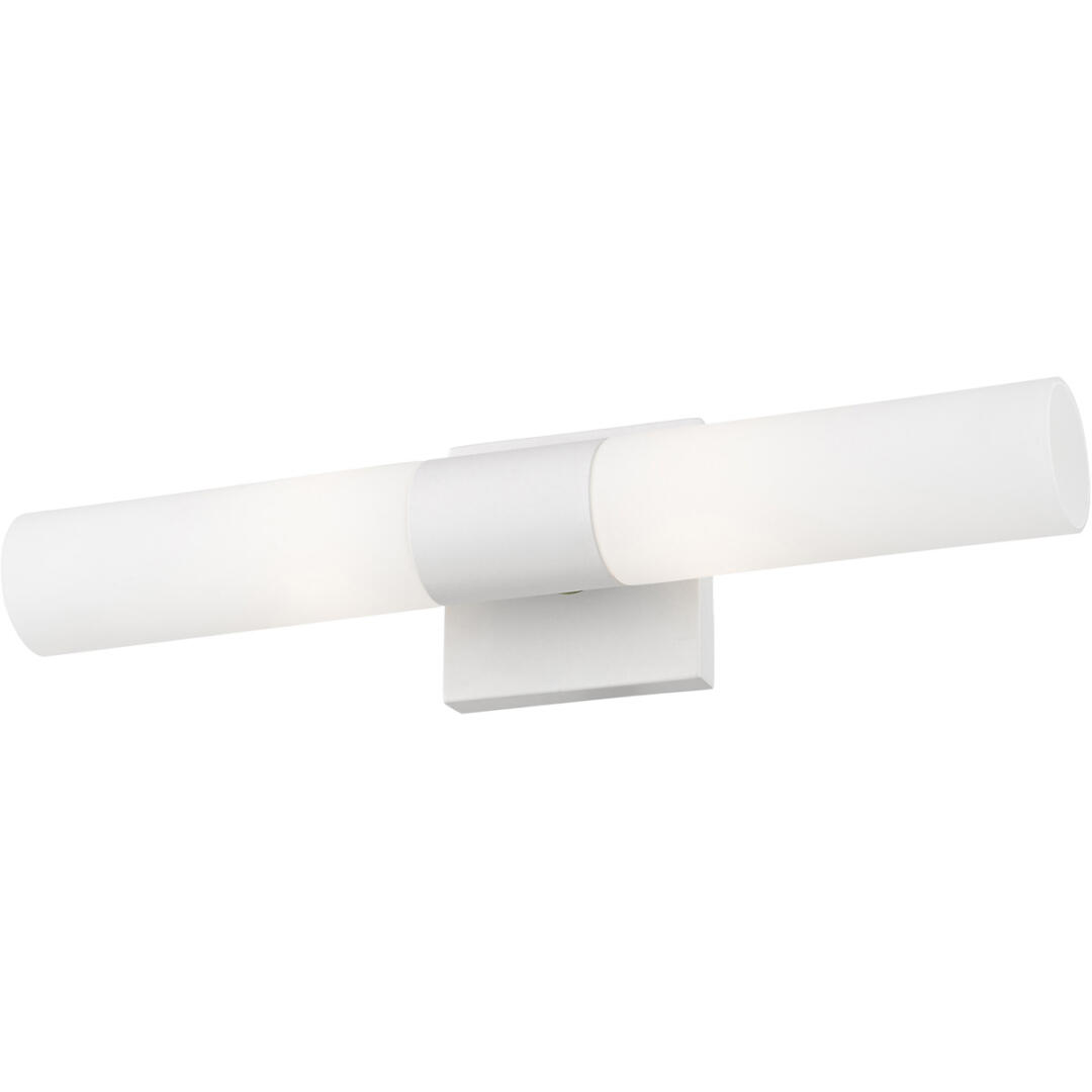 With the sleek contemporary design, the Aero bath bar casts a soft, flattering light which can be mounted horizontally or vertically. The tubular etched opal glass diffuses the light of two lamps.