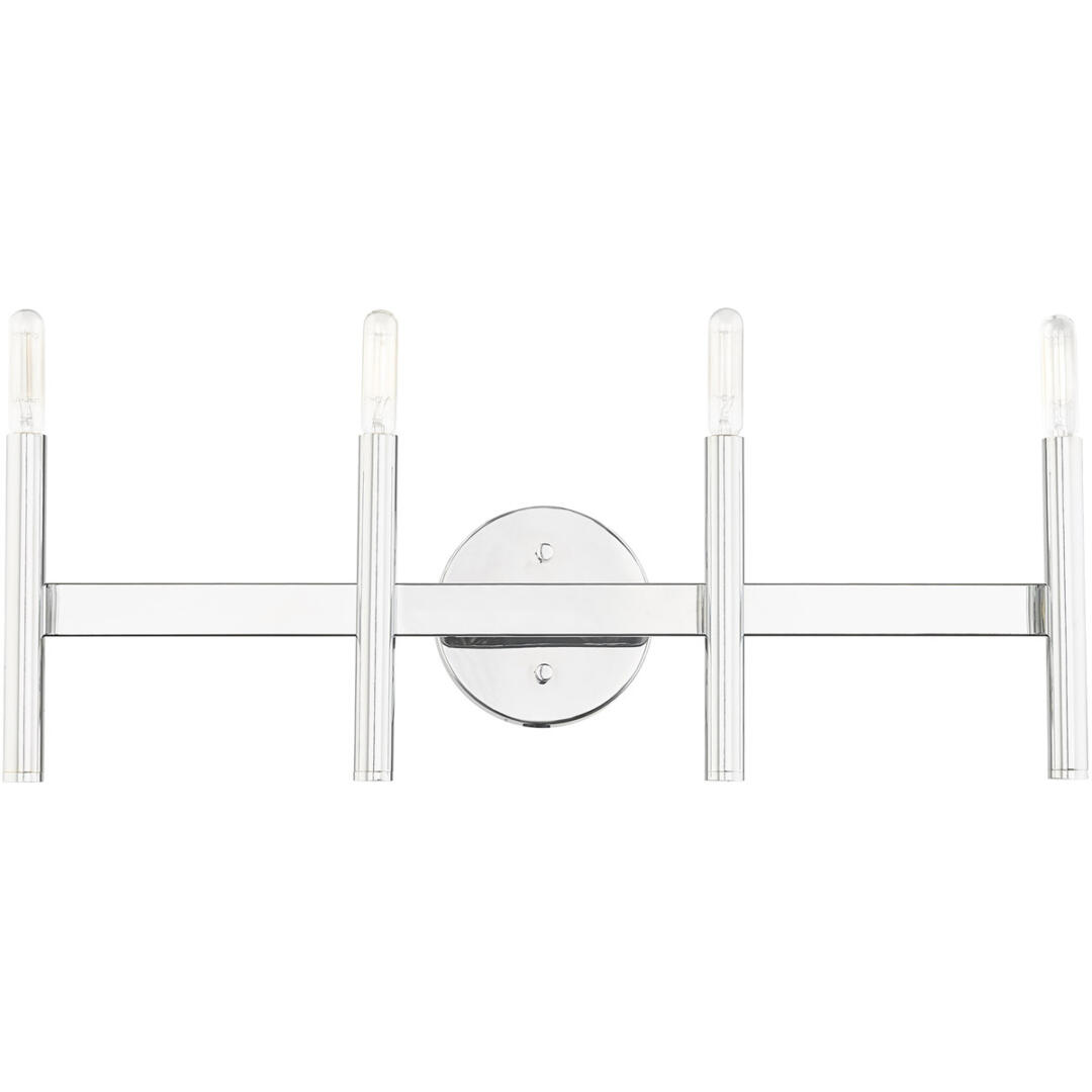 Clean lines and exposed bulb sockets make the Copenhagen collection perfect for your mid-mod or transitional bath. The eclectic look is perfect for spaces wanting an urban, minimalistic or industrial touch. With superb craftsmanship and affordable price, this polished chrome four-light vanity sconce is sure to tastefully indulge your extravagant side.