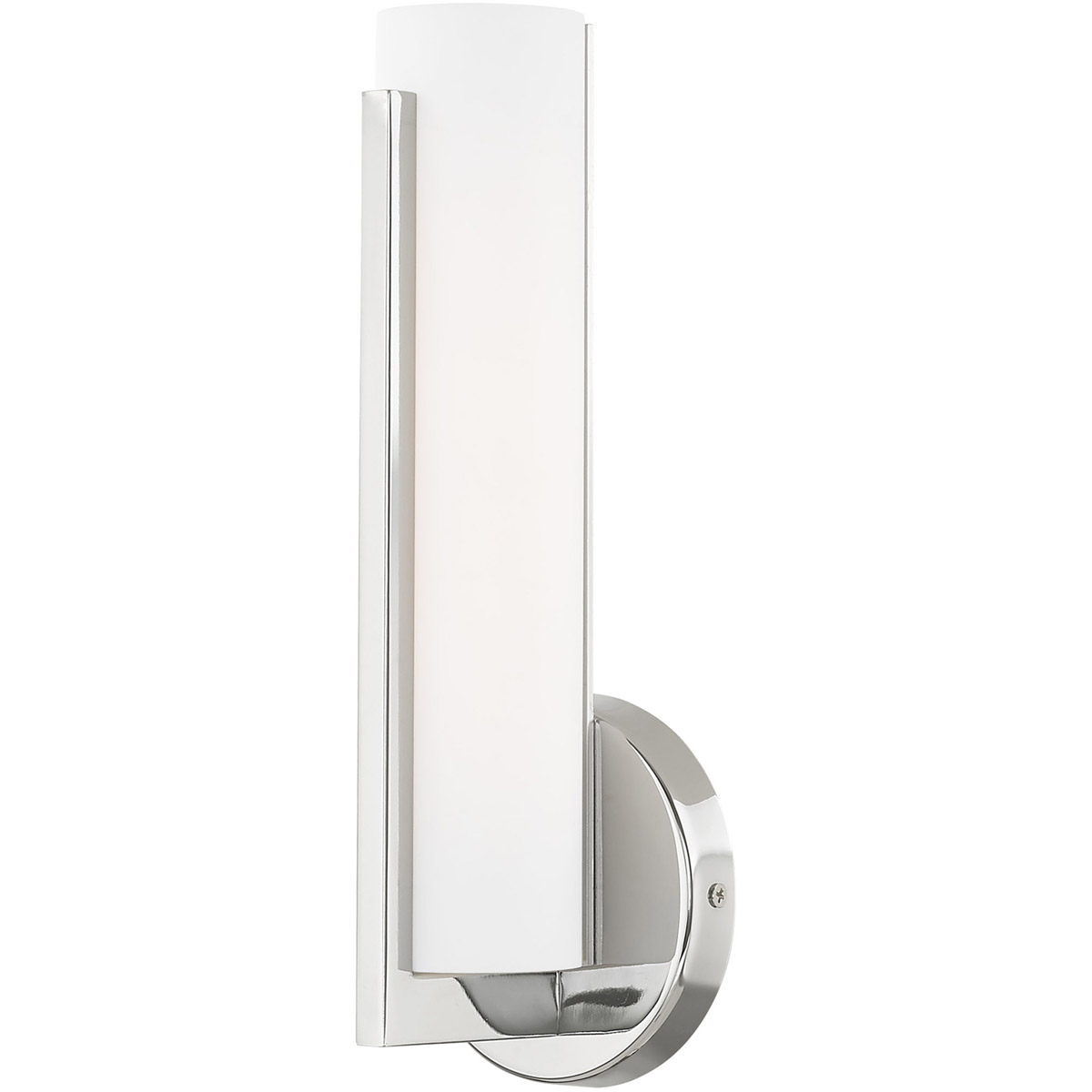 State of the art LED components deliver superior quality of light for the bathroom area while the sleek design and polished chrome finish adds sophistication with a modern look. The satin white cylindrical acrylic diffuses the light to provide a soft glow.