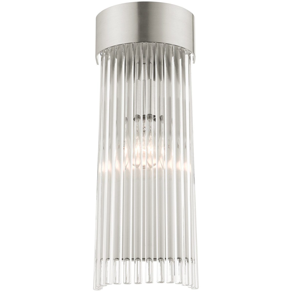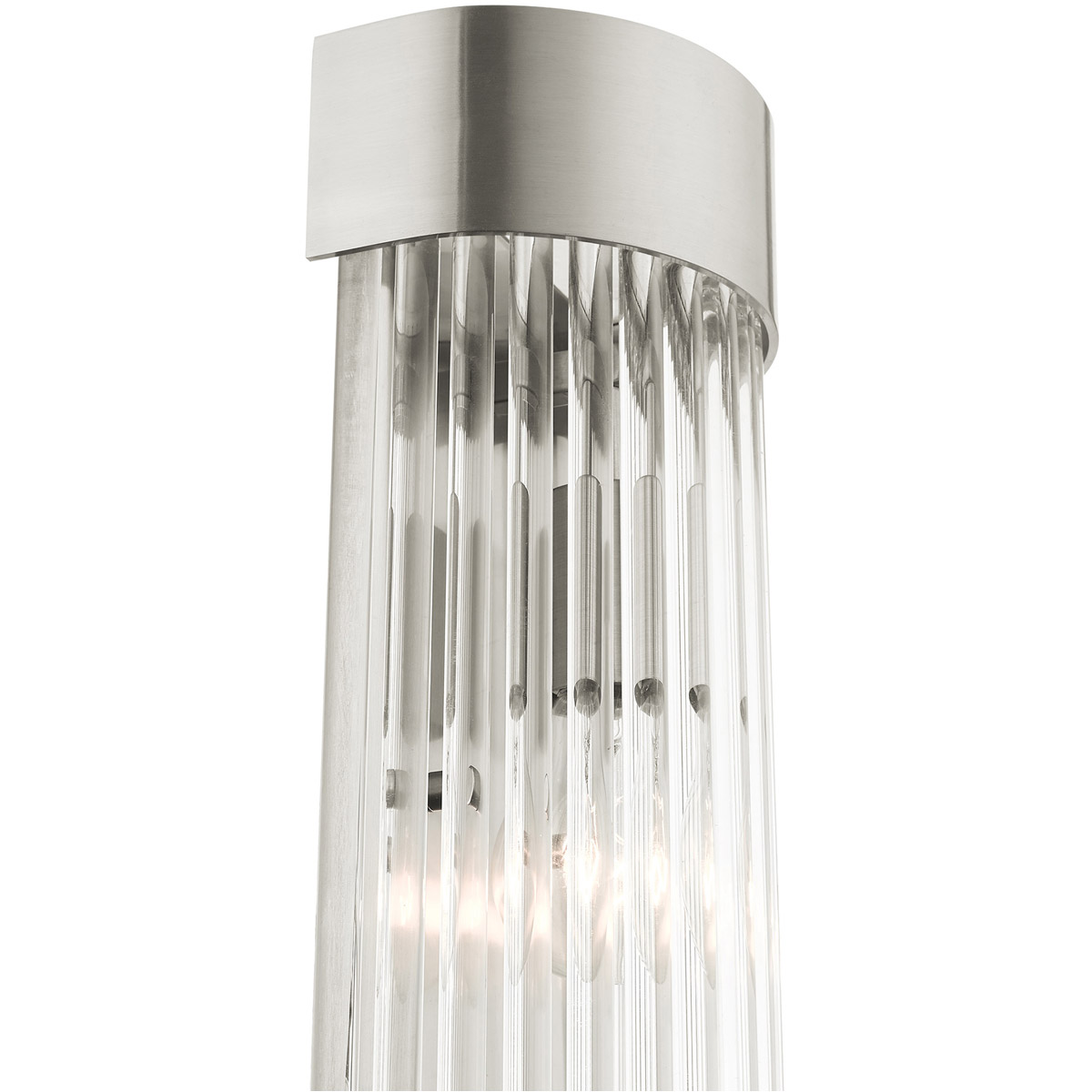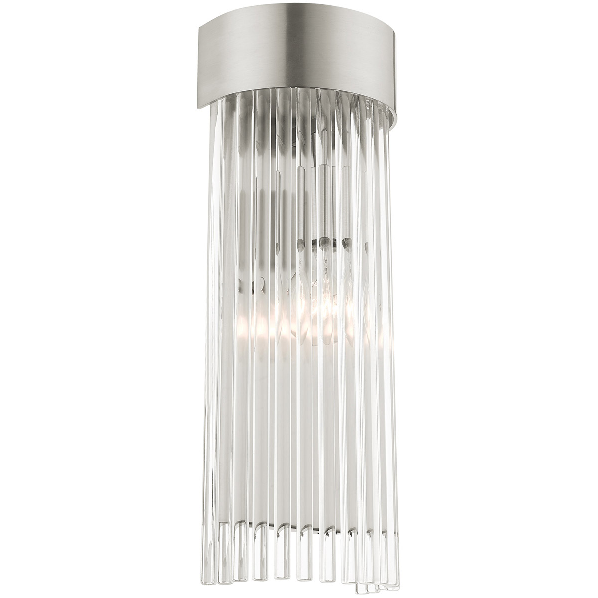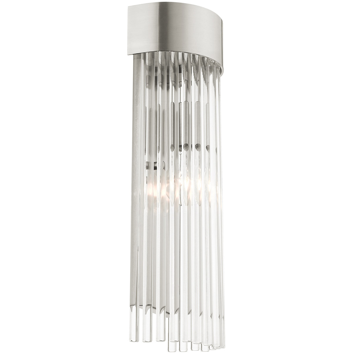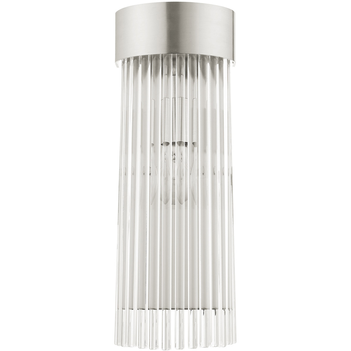 The Norwich ADA single crystal sconce will become an attention-grabbing feature in your modern home decor. The brushed nickel finish graces the design with elegance and charm, providing a timeless and glamorous quality to any interior. The clear crystal rods give the sconce a sleek and attractive appearance.