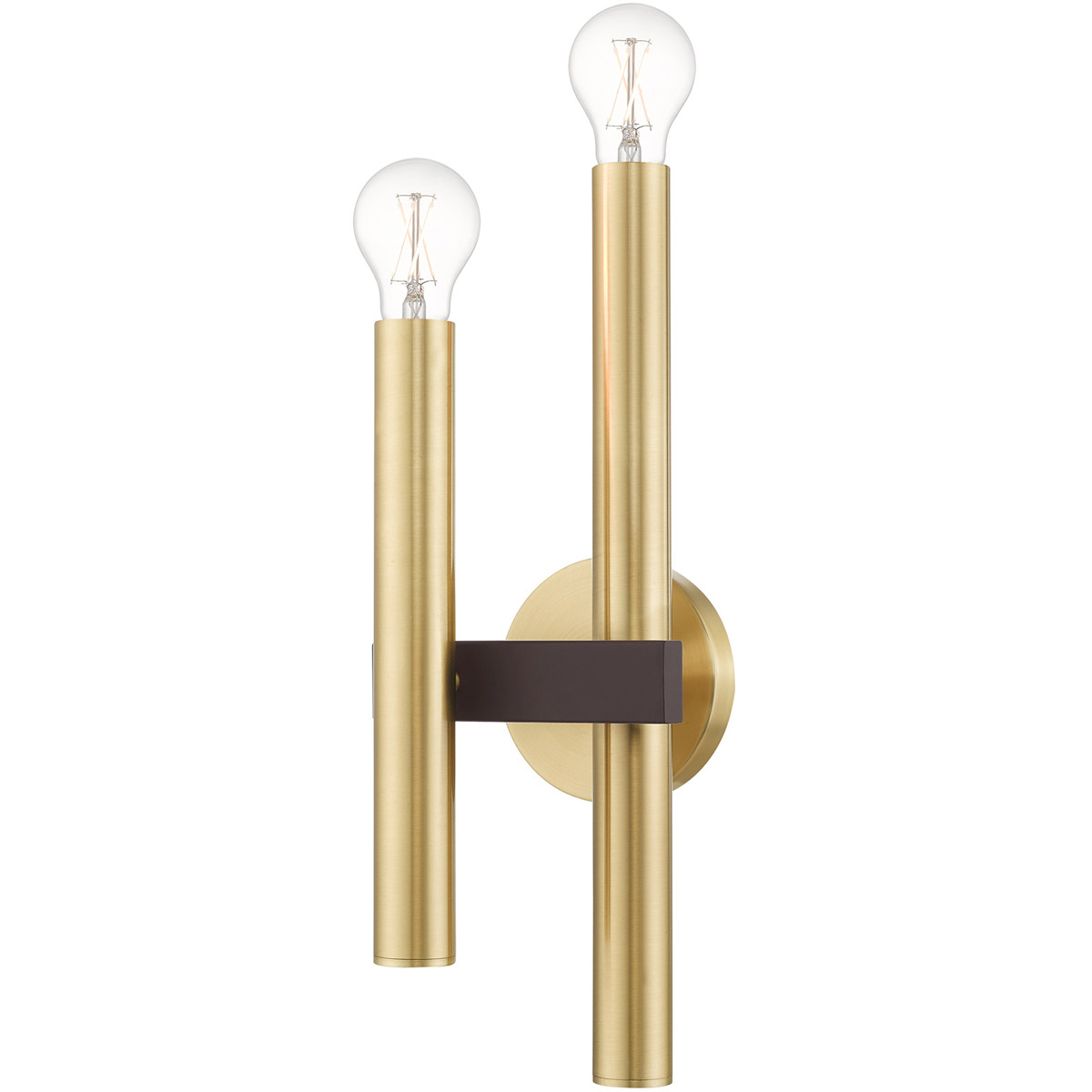 6.5 inch 2 Light Satin Brass & Bronze Wall Sconce with Steel base material-Lighting Lumens