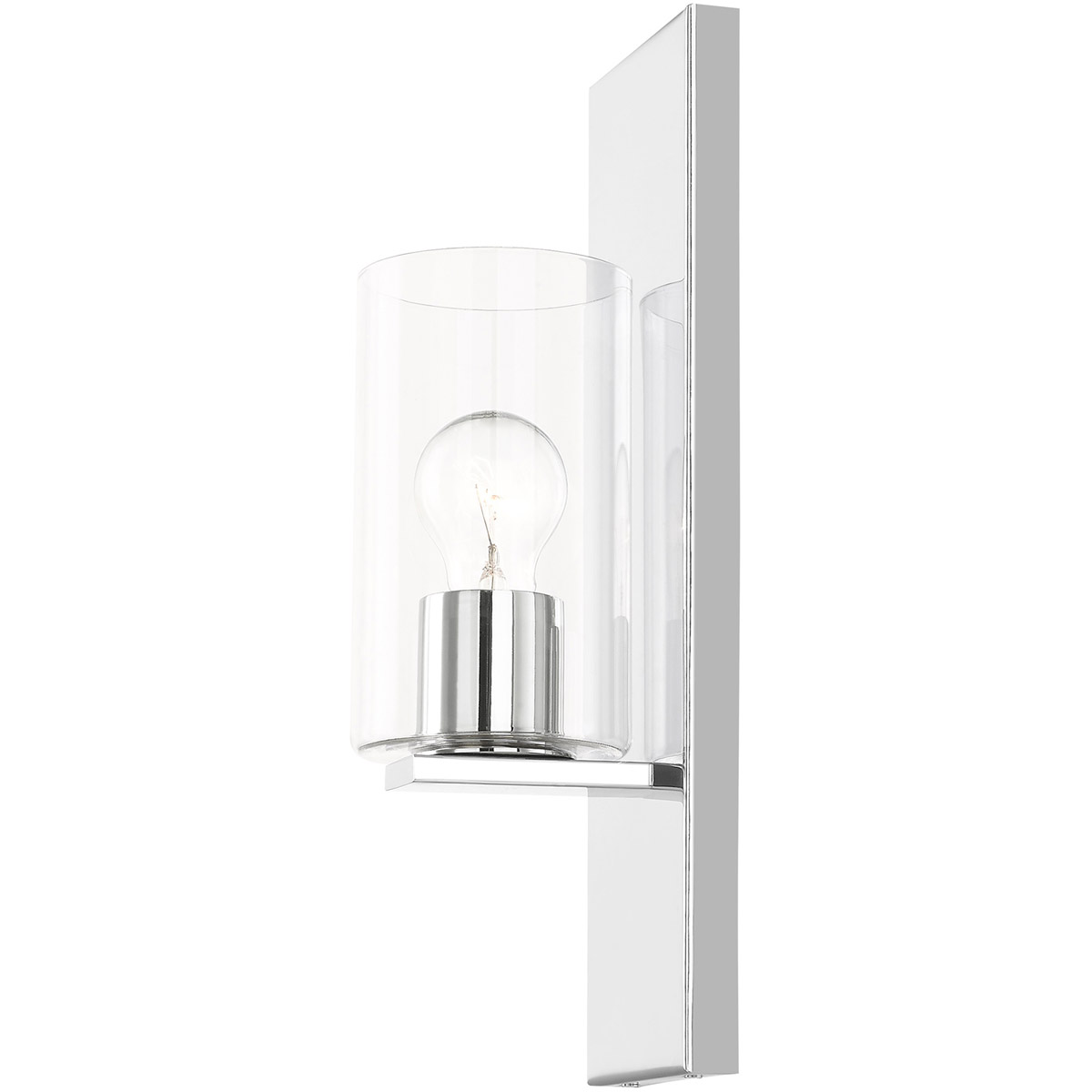 Illuminate your home with a bright design from the Zurich collection. This single sconce features a polished chrome finish with clear glass. Perfect for a contemporary or transitional luxury bathroom, bedroom or hallway setting.