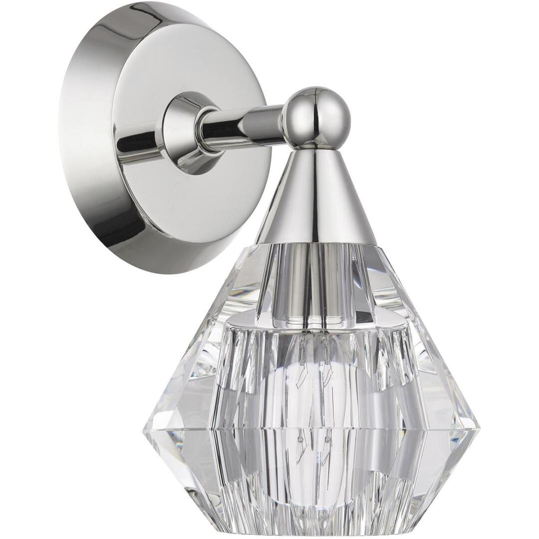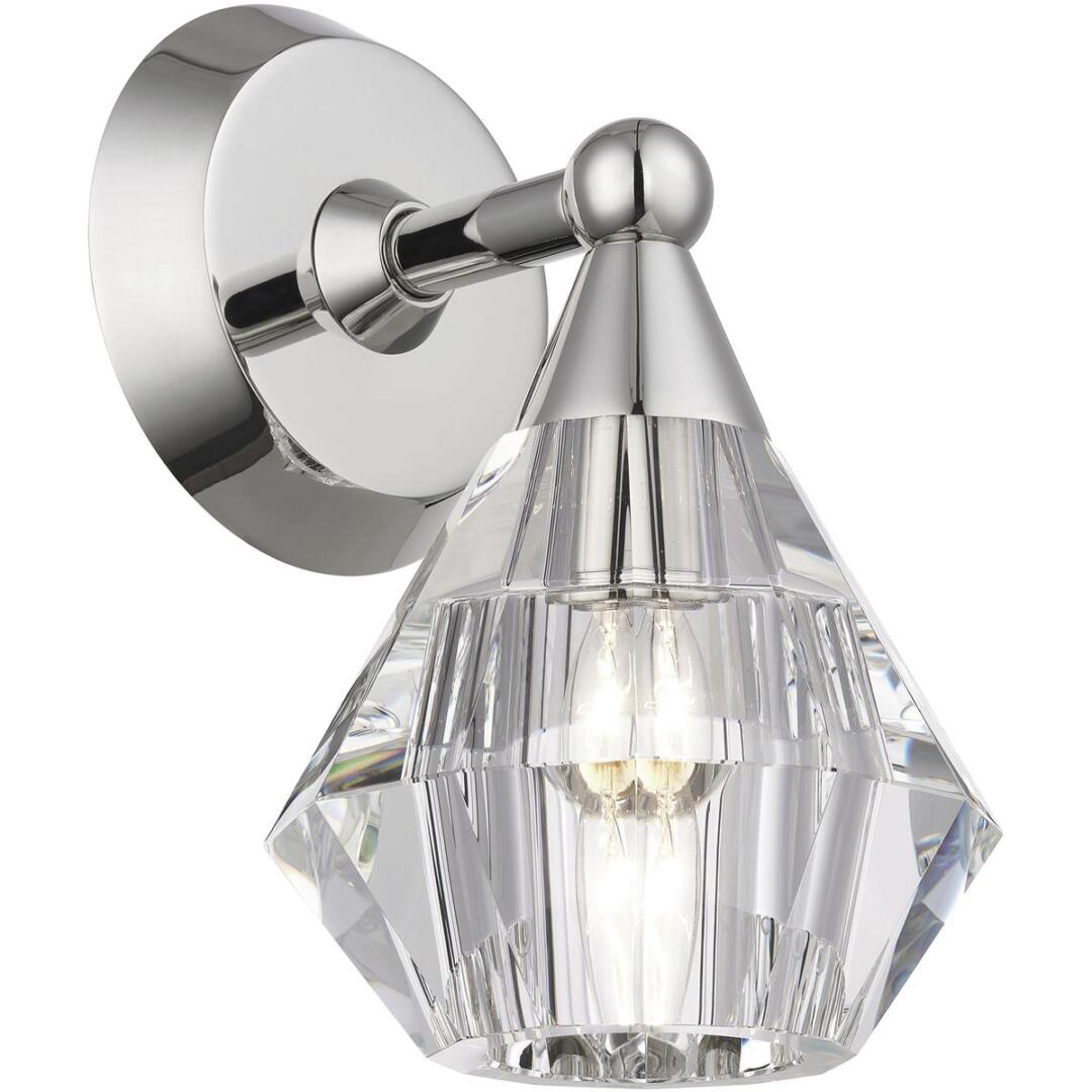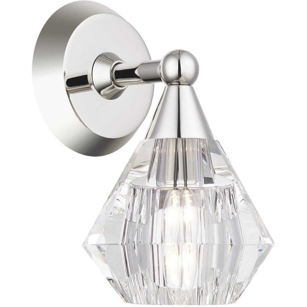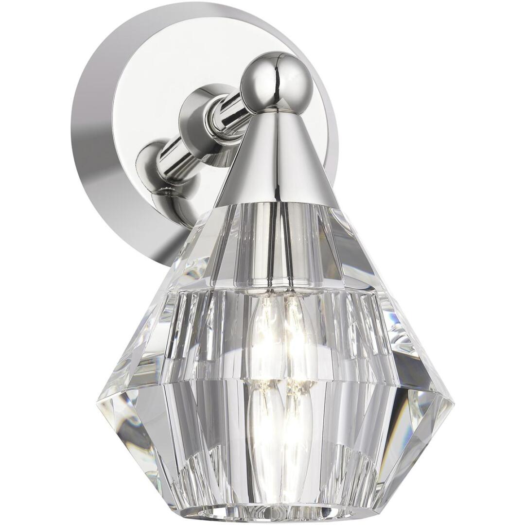 Clear faceted crystal makes an elegant appearance in this polished nickel single sconce. The Brussels sconce is small and attractive, and will make just as dazzling an impression when used in multiples as it will when used alone.