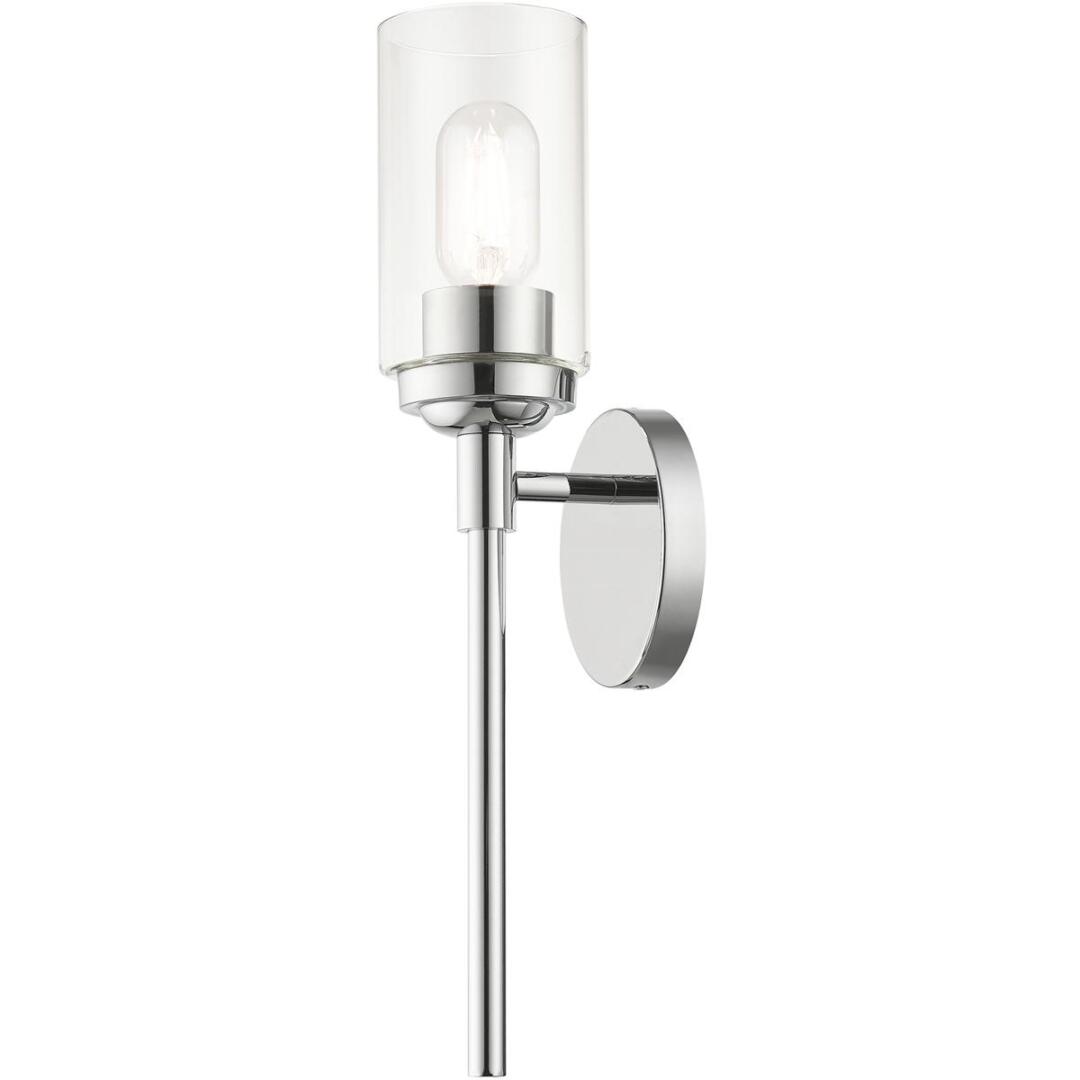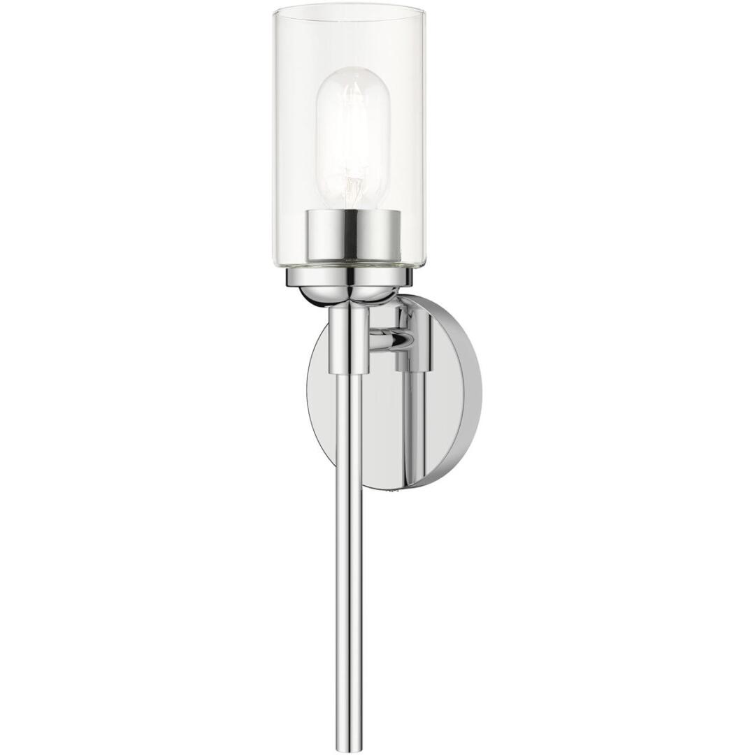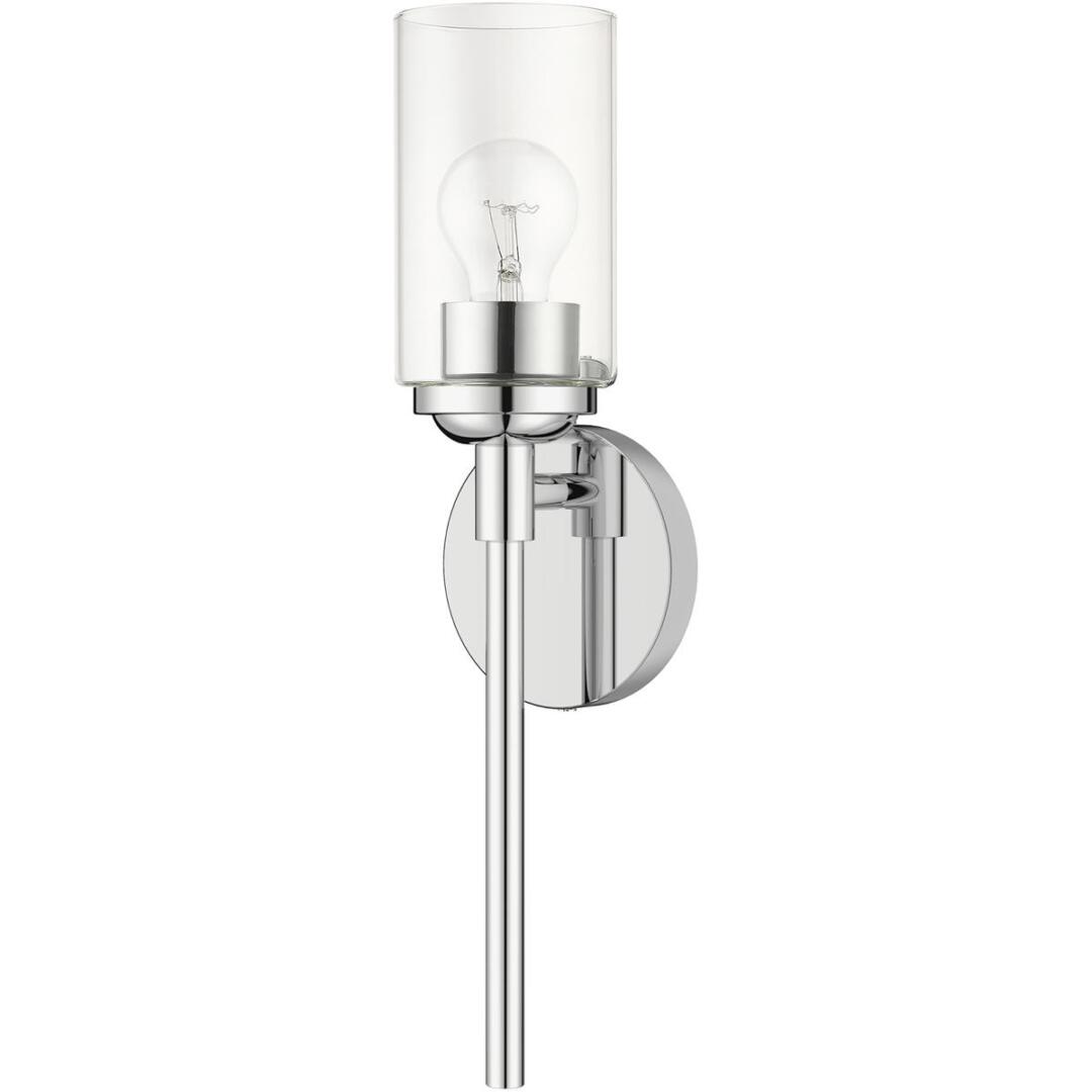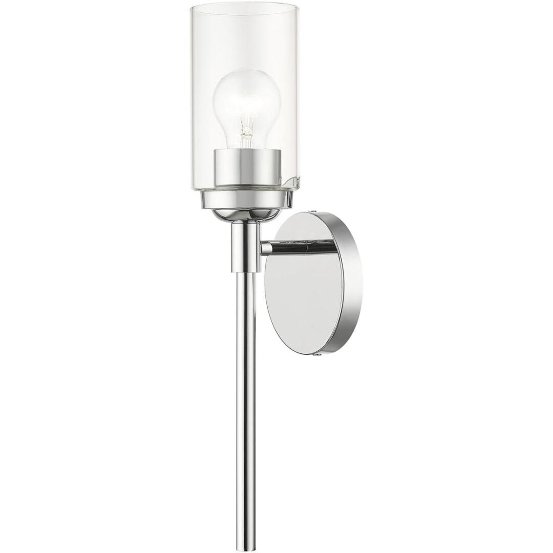 Illuminate your home with a bright design from the Whittier collection. This single sconce features a polished chrome finish with hand blown clear glass. Perfect for a contemporary or transitional luxury bathroom, bedroom or hallway setting.