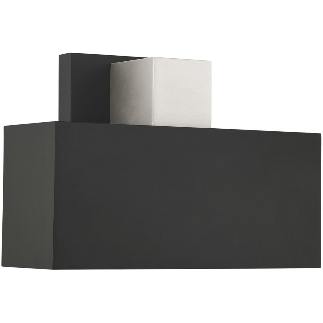 Minimalistic and streamlined defines the Lynx collection. Meticulously hand crafted of solid brass, this simple yet substantial outdoor lantern allows for versatile applications to your home exterior. Add ambient light just about anywhere in your home, indoors or outdoors. This medium one-light rectilinear wall sconce is presented in a black finish with a brushed nickel accent.