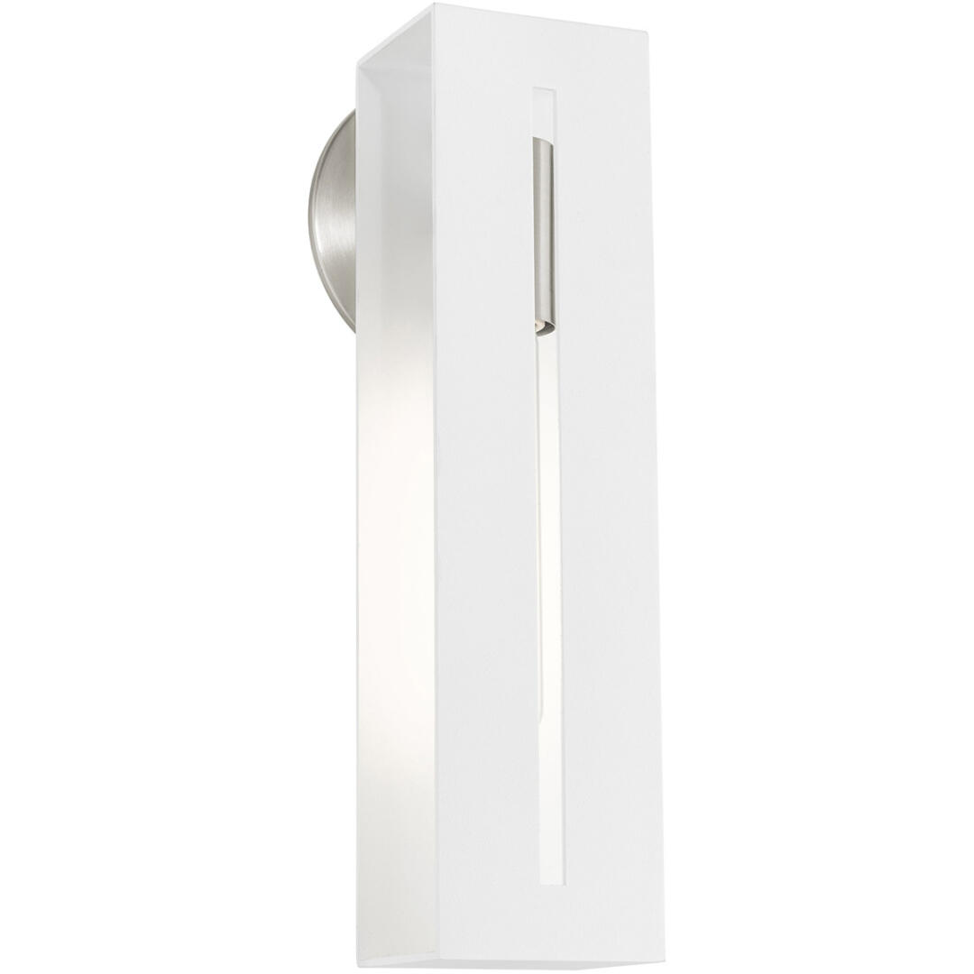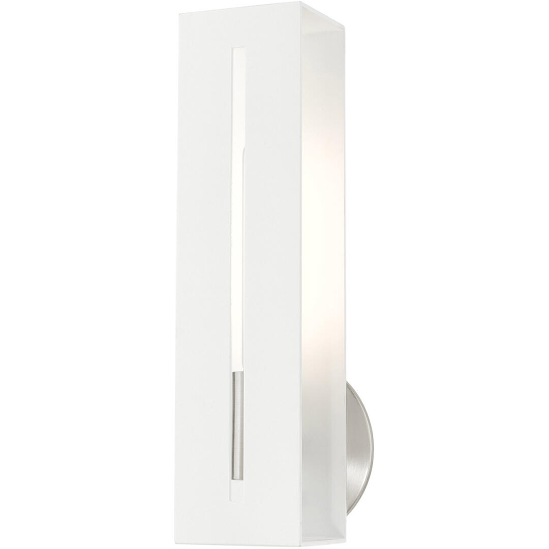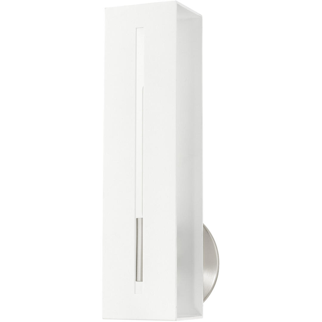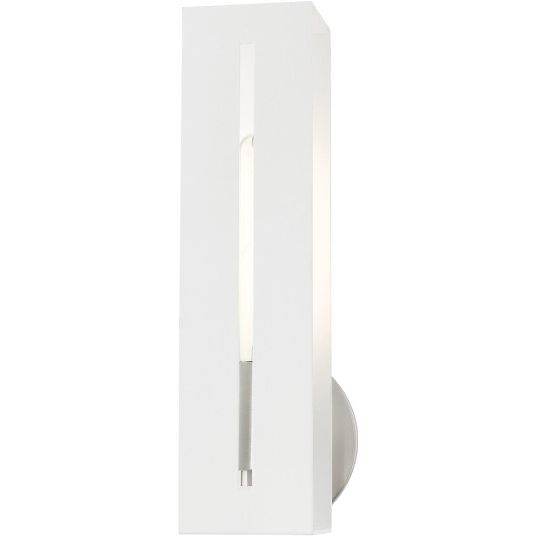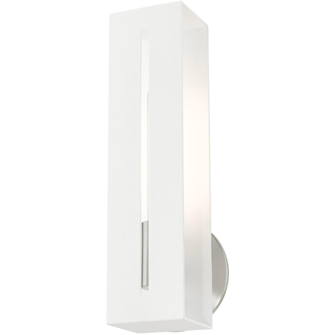 Inspired by the modern skyscraper design, the architectural lines of the Soma collection are truly suitable for urban and contemporary environments such as an industrial loft. The exposed bulbs make a beautiful accompaniment to the distinctive contrasting finishes of this rectilinear piece. This contemporary two light vanity sconce comes in a textured white finish with brushed nickel accents. It fits perfectly in a minimalistic modern bathroom, hallway or bedroom.
