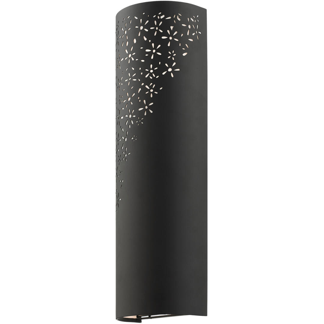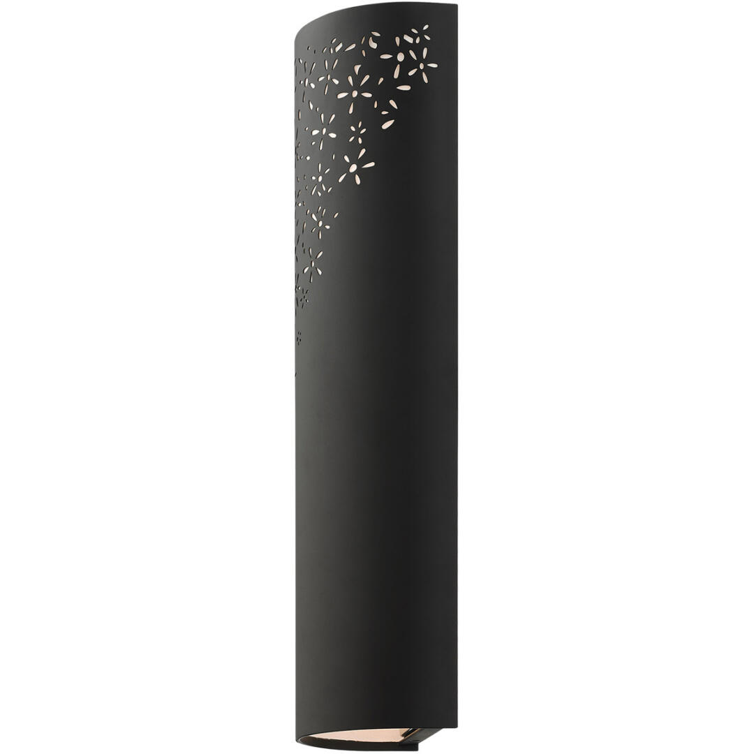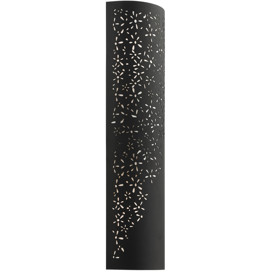 The Noria collection combines an intricate organic laser cut black finish steel frame surrounds an off-white fabric shade creating a casual warm light with a touch of nature vibe. This large two-light sconce will have a definitive presence in many areas of your home. You can place it in the living room, hallway, bathroom or in the bedroom. Hang this piece vertically or horizontally.