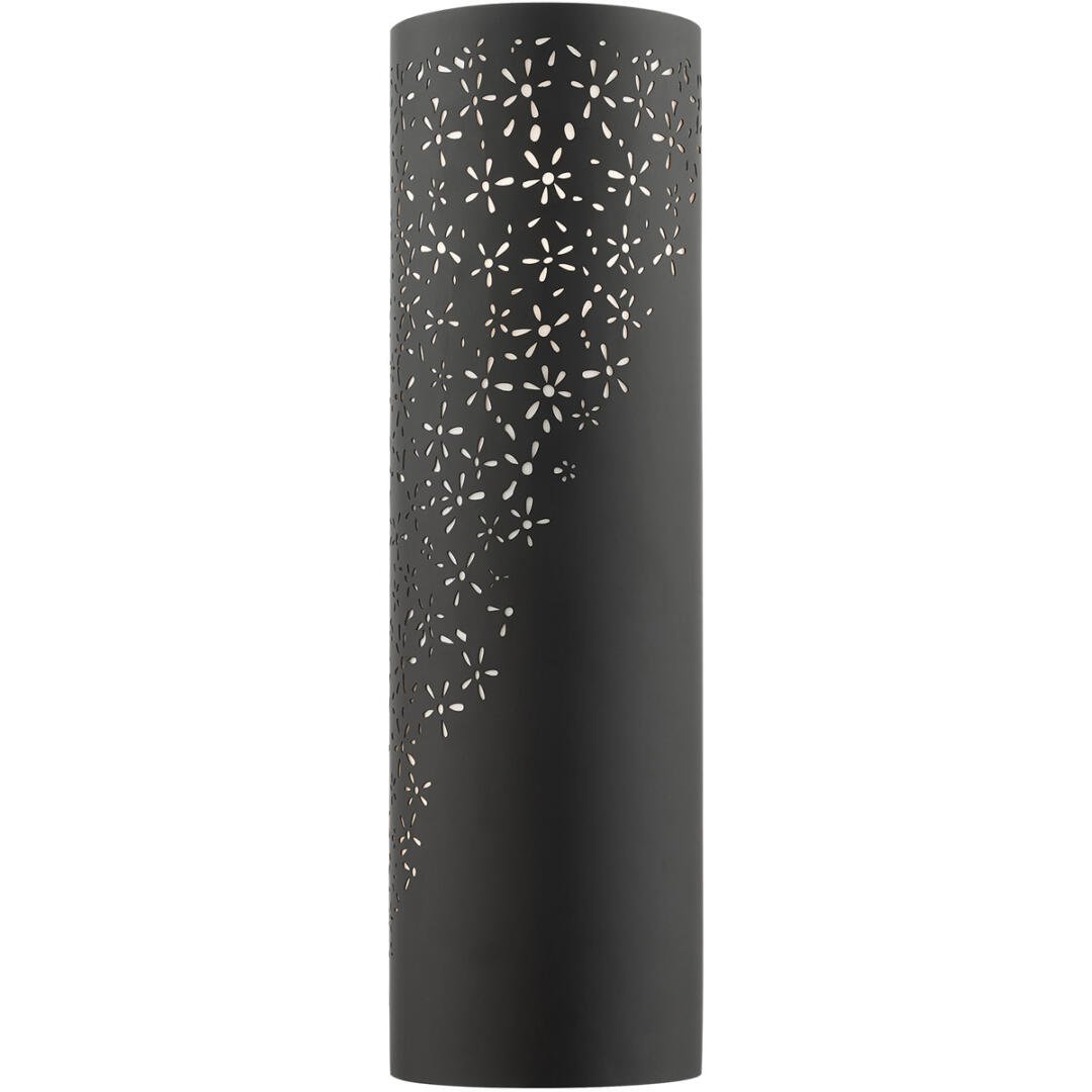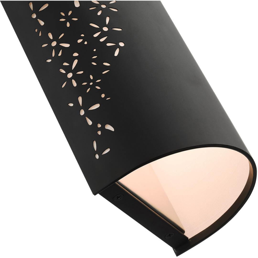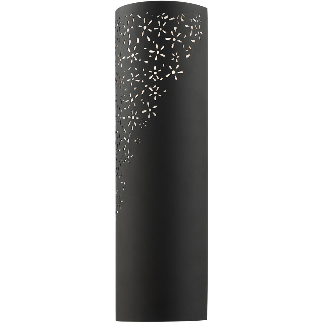 The Noria collection combines an intricate organic laser cut black finish steel frame surrounds an off-white fabric shade creating a casual warm light with a touch of nature vibe. This large two-light sconce will have a definitive presence in many areas of your home. You can place it in the living room, hallway, bathroom or in the bedroom. Hang this piece vertically or horizontally.