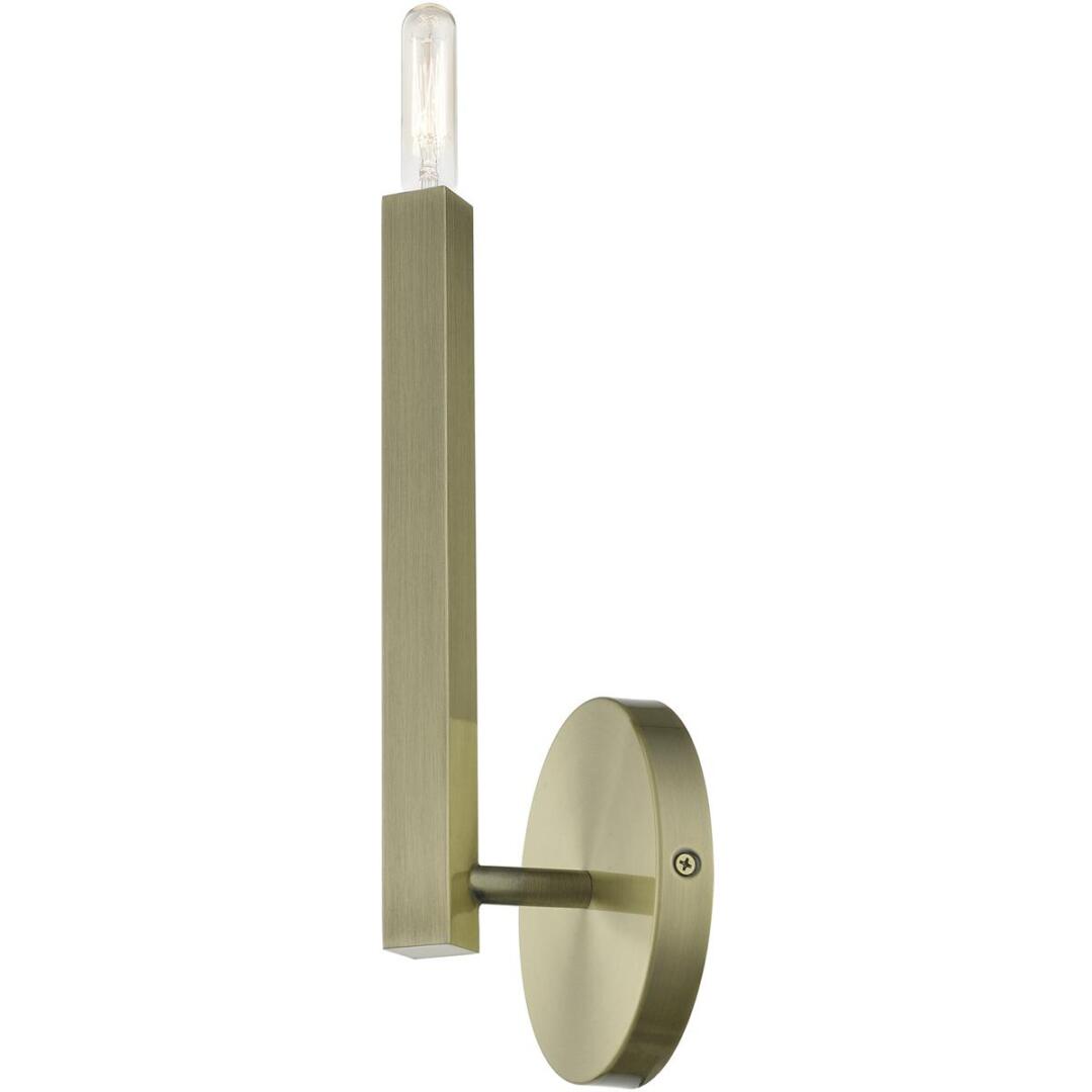 The Monaco collection inherits the multidirectional lines inspired by the Sputnik. The exposed bulb glimmers at the end of the rectangular arm to create a touch of understated glamour for today’s modern spaces. The timeless design will add a sense of airiness and motion to any room. This single light sconce would look wonderful anyplace; bathrooms, living rooms, modern dining rooms, hallways or bedrooms. It is presented in an antique brass finish.