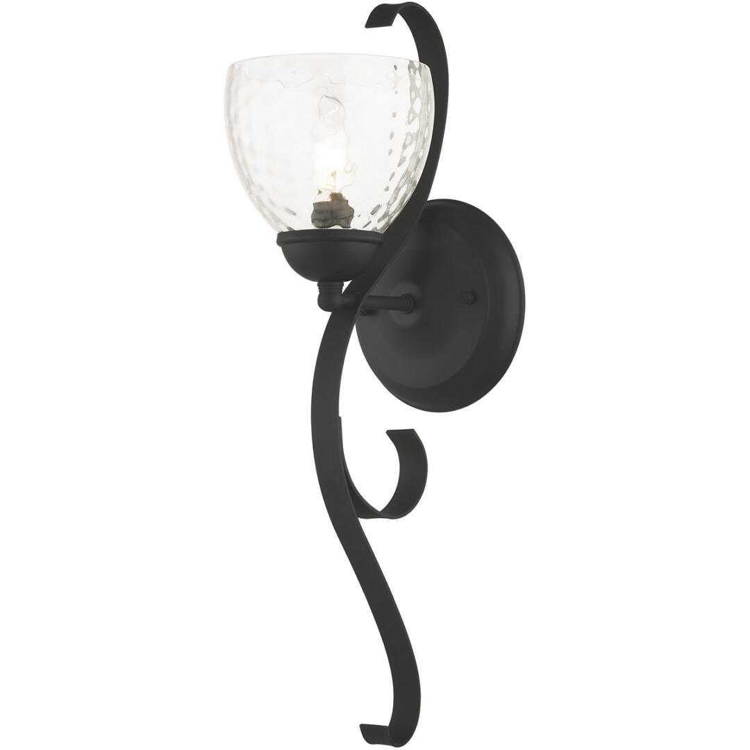 This one light wall sconce features a lustrous black finish with light glowing from within the large white alabaster glass bowl shape shade. Complete a bathroom, bedroom, or any room in your house with this beautiful wall sconce.